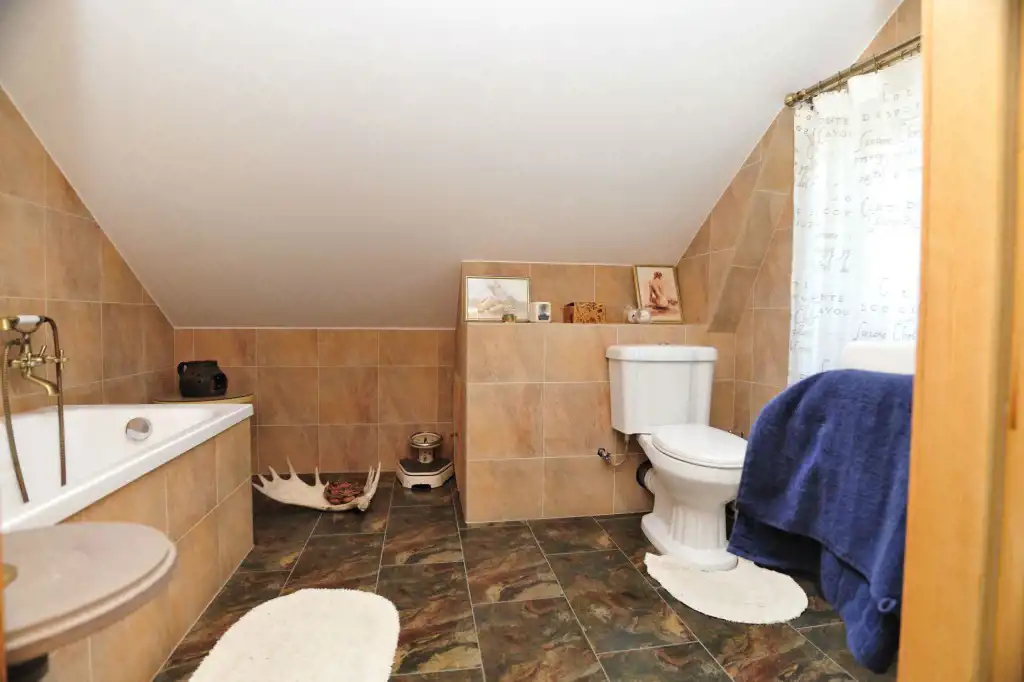 Na piętrze 3 sypialnie, łazienka oraz salon kominkowy.