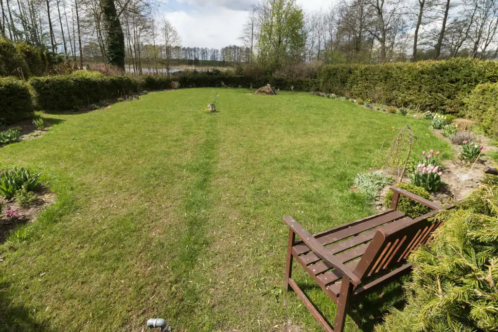 Dom jest zbudowany na dwóch działkach, z bezpośrednim dostępem do jeziora.