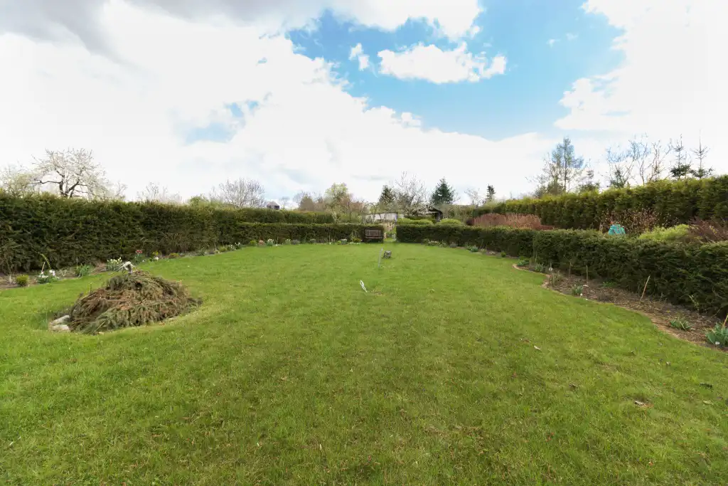 Działka ogrodzona z nasadzeniem żywopłotu (świerki i żywotniki) tworzącym nieprzeniknioną zasłonę. Ogród zaopatrzony w sieć wodociągową i elektryczną.