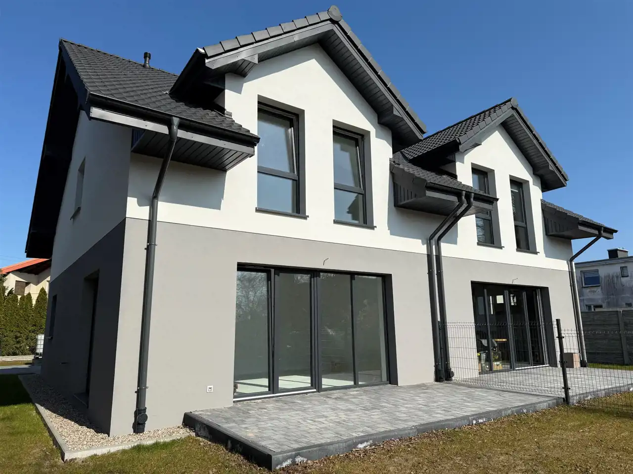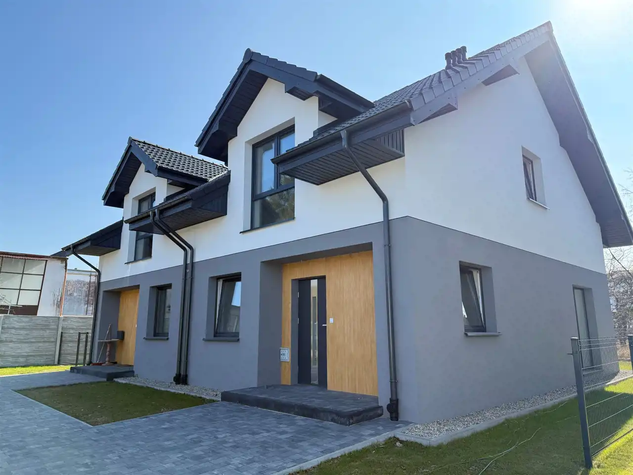 Dom oddawany jest w podwyższonym standardzie deweloperskim z wykorzystaniem materiałów wysokiej jakości. Ściany zewnętrzne - 24 cm. Ściana pomiędzy lokalami wykonana z pustaka o grubości 24cm. Ściany pomiędzy pomieszczeniami wykonane z gazobetonu o grubości 12cm. Ściany wewnętrzne pokryte tynkiem gipsowym, wycekolowane i zagruntowane, piętro płyty k/g wycekolowane i zagruntowane. Ocieplenie - Styropian 20 cm. Elewacja - wykończenie tynkiem sylikonowym firmy Termoorganika, odpornym na wilgoć i zabrudzenia. Ściany działowe – gazobeton. Ściany wewnętrzne wykończone tynkiem gipsowym. Dach pokrycie – dachówka betonowa CREATON. Instalacja C.O. wyposażona w piec jednofunkcyjny z zasobnikiem wody120 L SAUN PAKIET THELIACONDENS, ogrzewanie podłogowe we wszystkich pomieszczeniach. Stolarka okienna – PCV, 3 szybowa, sześciokomorowa firmy DRUTEX. Instalacja elektryczna, rozprowadzone przewody, tablica bezpiecznikowa z wyposażeniem, TV rozprowadzona w pokojach, TV kablowa i internet CHOPIN. Rozprowadzona instalacja w budynku: prąd, gaz, woda, kanalizacja, c.o. Instalacja alarmowa rozprowadzona bez osprzętu. Przyłącza mediów: woda, gaz, prąd, kanalizacja, TV. Wejście do budynku wykonane z kostki brukowej. Opaska wokół budynku oraz duży taras z kostki brukowej. Docieplenie poddasza wełna 30 cm.