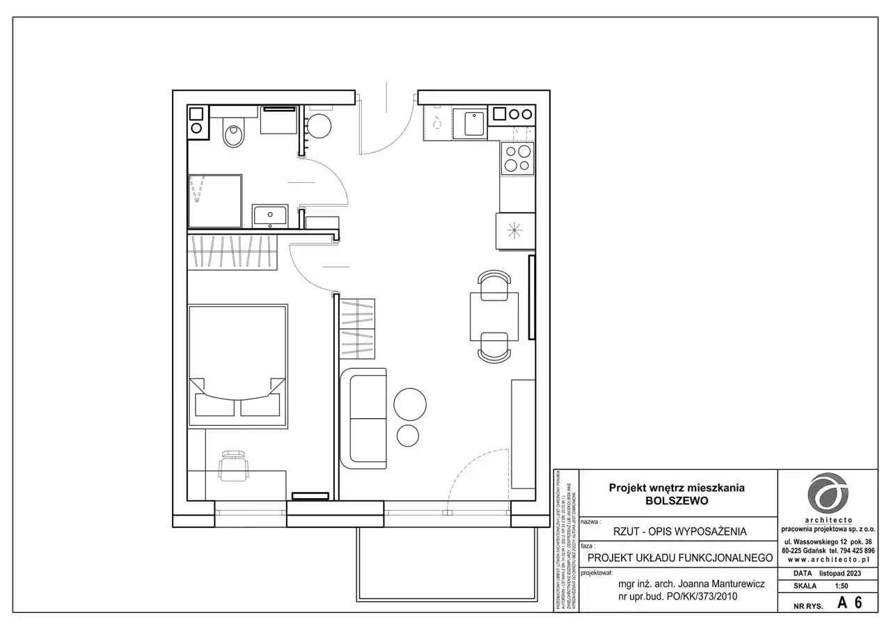 Lokal o powierzchni 36,5m2 zlokalizowany jest na I piętrze, trzypiętrowego, nowoczesnego budynku z windą w doskonale skomunikowanej, dynamicznie rozwijającej się części Bolszewa w otulinie terenów zielonych. Wewnętrzny, przestronny parking. Lokal wcześniej niezamieszkały wręcz pachnący nowością. Całość doskonale się komponuje, zaaranżowana z dbałością o detale i wygodę przyszłych mieszkańców.