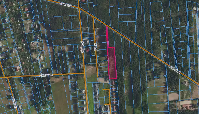 Działka znajduje się w cichej i spokojnej okolicy, otoczona lasem i polami. W pobliżu powstają nowoczesne domy, a bezpośrednio obok znajduje się kameralne osiedle domów w zabudowie bliźniaczej.