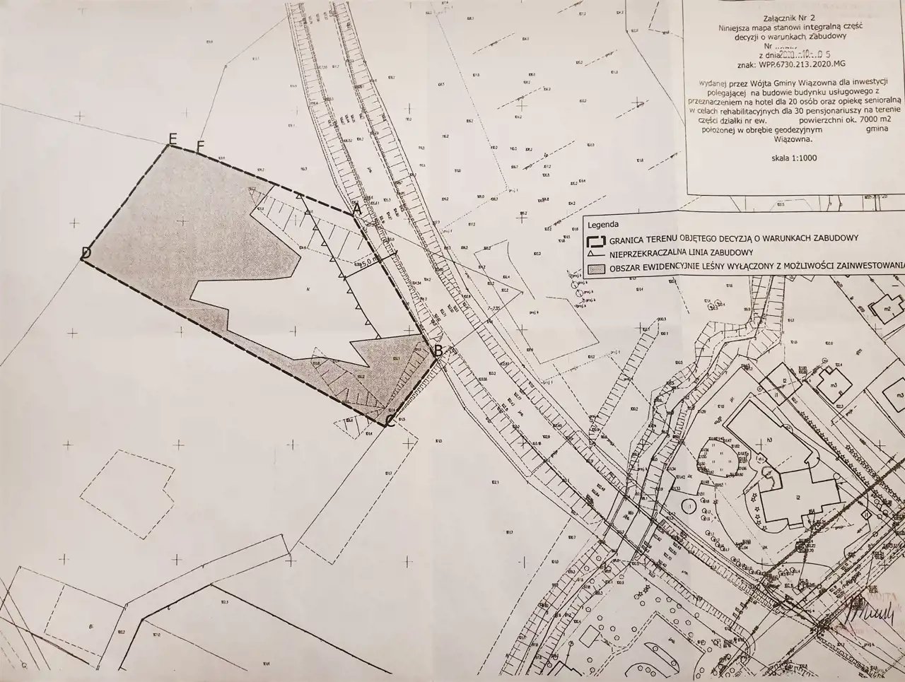 Działka inwestycyjna 7000m2 w Wiązownej z przeznaczeniem na budowę budynku usługowego z hotelem dla 20 osób oraz opieką senioralną w celach rehabilitacyjnych dla 30 pensjonariuszy.