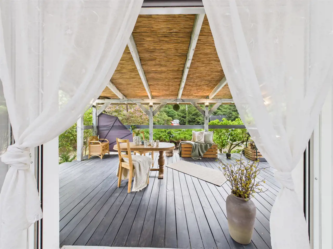 - zadaszony tarasem, idealna na posiłki na świeżym powietrzu,
