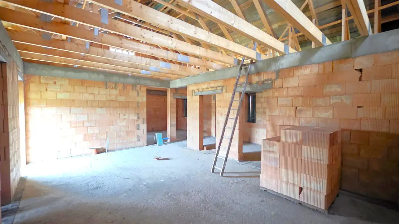 Na działce powstaje funkcjonalny, niepodpiwniczony, dom parterowy z możliwością adaptacji poddasza. Projekt Mokka 2 wyróżnia się nowoczesną bryłą, dużymi przeszkleniami i świetnie zaprojektowaną przestrzenią dzienną. W planie m.in. przestronny salon z kuchnią, trzy ustawne sypialnie, łazienka, WC, pomieszczenie gospodarcze i komunikacja – razem ok. 97 m² powierzchni użytkowej parteru. Dom budowany jest z zastosowaniem solidnych materiałów (m.in. Porotherm, strop Teriva), zgodnie z pełną dokumentacją techniczną, która zostanie przekazana nabywcy.