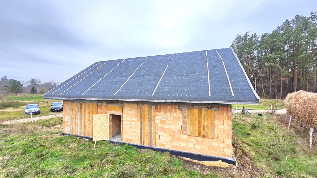 Działka o powierzchni 720 m² z rozpoczętą budową nowoczesnego domu jednorodzinnego w projekcie Mokka 2, położonego opodal centrum nadmorskiej miejscowości Żarnowska, jeziora Łebsko oraz plaży, opodal drogi wojewódzkiej nr 214 Łeba (6km) - Lębork (25km).