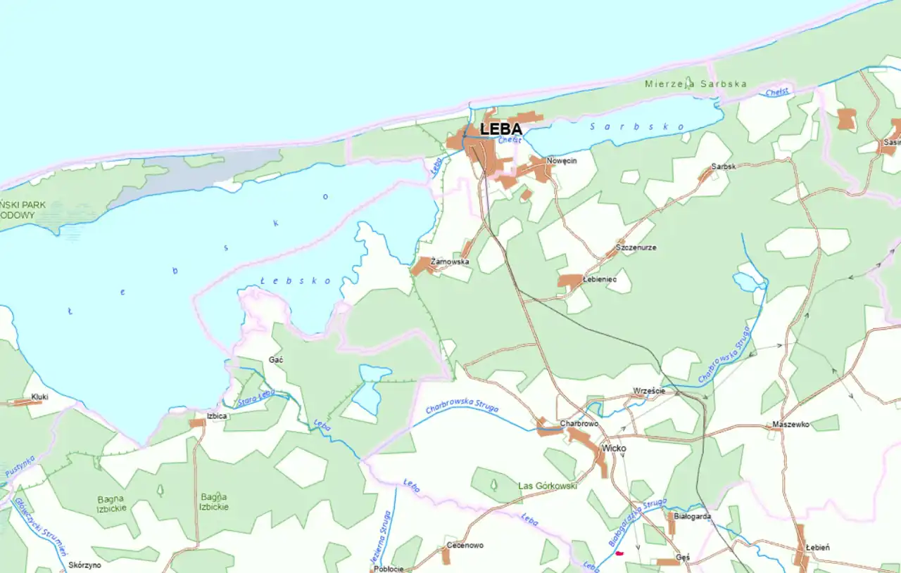 Przestronny dom wolnostojący o powierzchni użytkowej ok. 450 m² (powierzchnia całkowita ok. 600 m²), usytuowany na imponującej działce o powierzchni 9 440 m², położonej w miejscowości Gęś, opodal drogi wojewódzkiej nr 214 Lębork–Łeba.