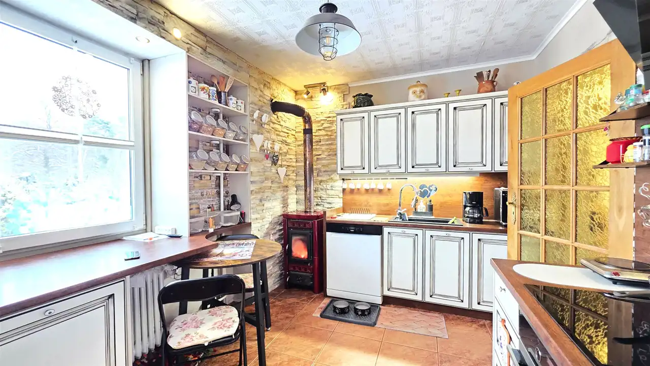 Dom całoroczny, wybudowany został w 1990 roku, wyposażony jest w ogrzewanie gazowe oraz kominek. Nieruchomość posiada dostęp do wody z wodociągu oraz dodatkowe ujęcie ze studni. Budynek wyposażony jest w okna PCV, a dach pokryty blachą trapezową. Każde pomieszczenie oferuje widok na zieleń, co podkreśla wyjątkowy, wypoczynkowy charakter nieruchomości. To unikalna nieruchomość z potencjałem inwestycyjnym, położona w jednej z najbardziej pożądanych lokalizacji w pobliżu morza i jezior. Idealna zarówno do prowadzenia działalności turystycznej, jak i do spokojnego życia w otoczeniu natury.