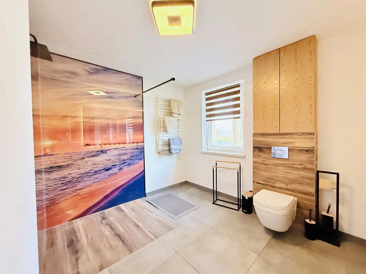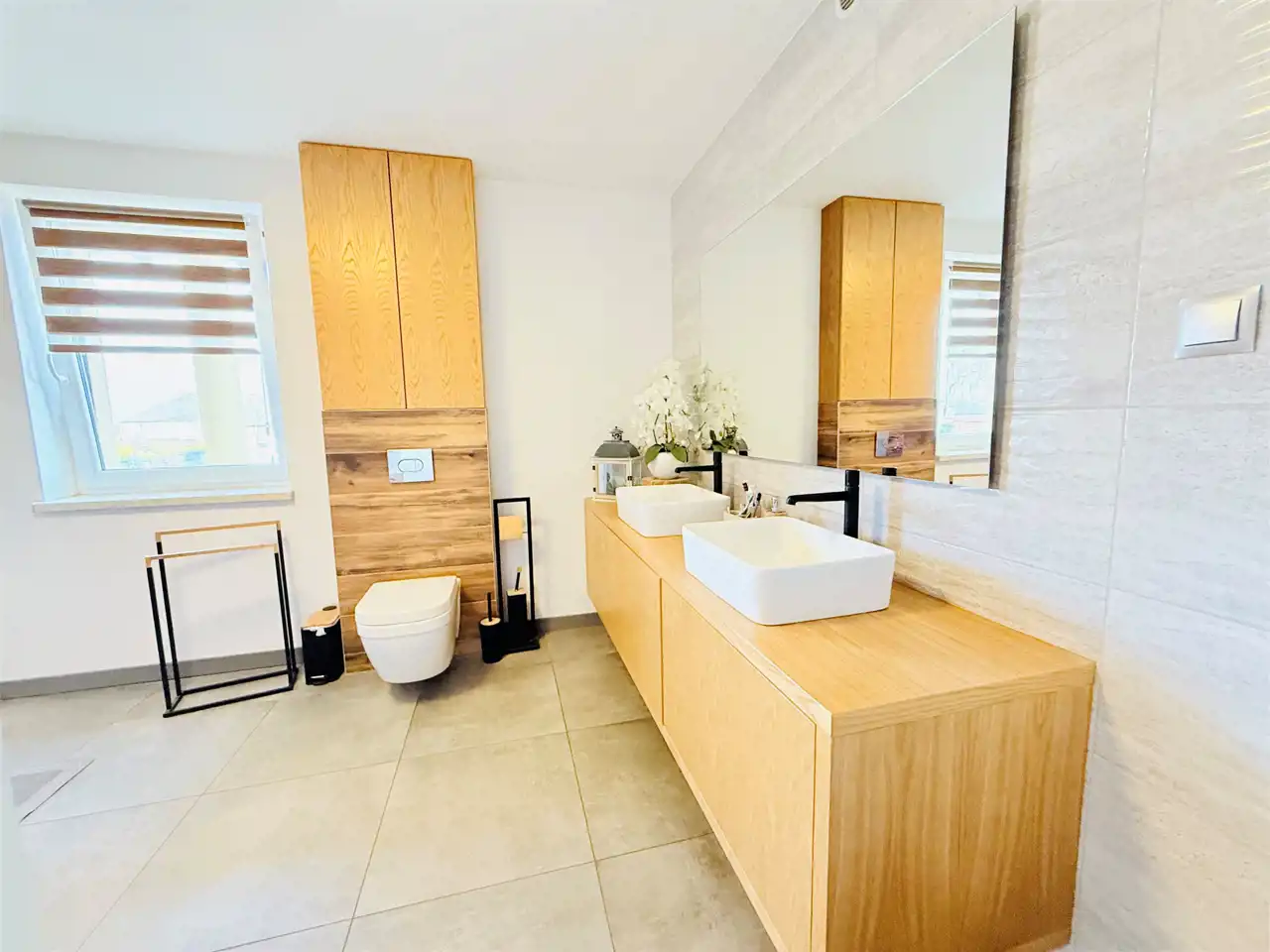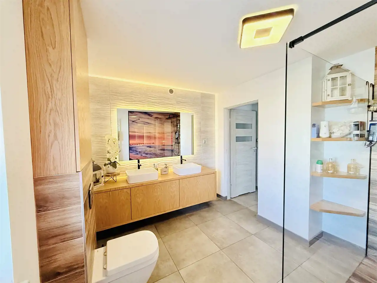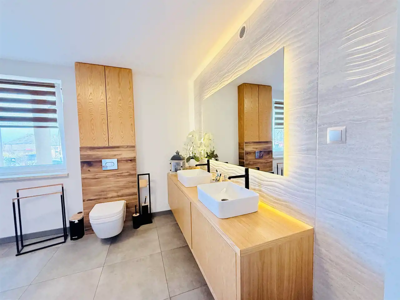 nowoczesna łazienka z WC oraz dodatkowa toaleta dla gości,