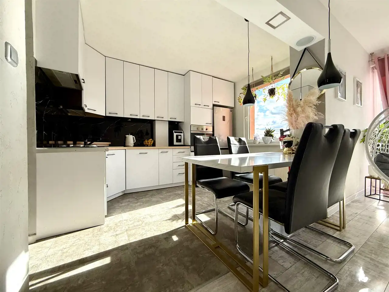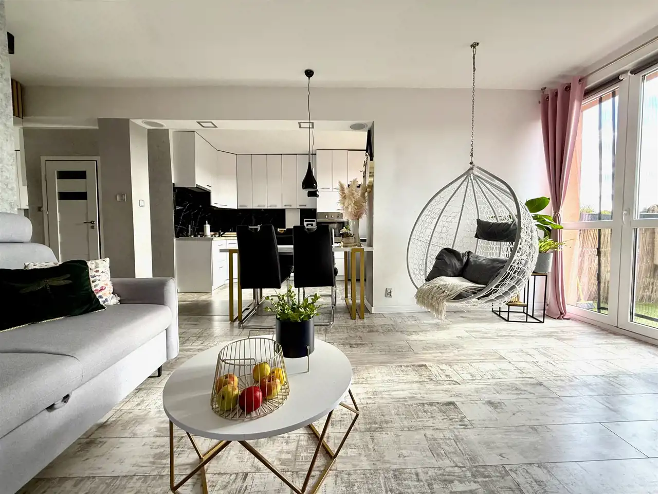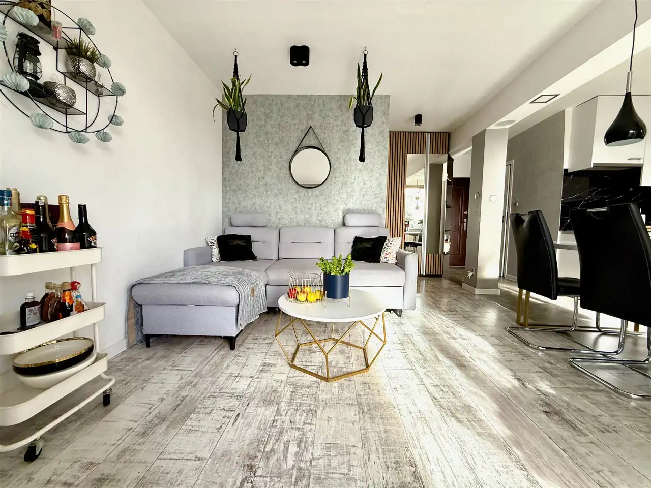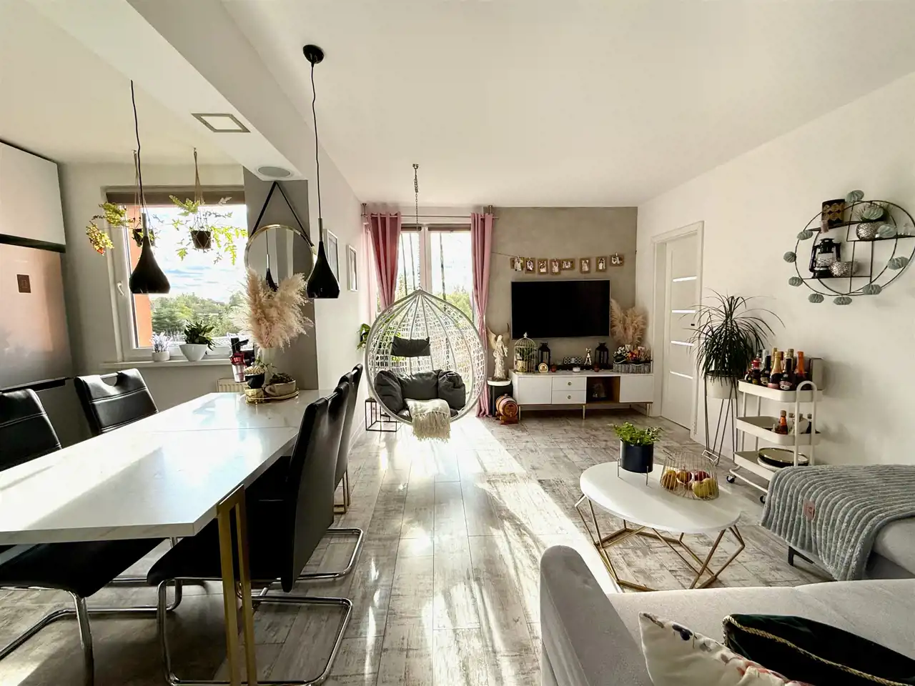 Z Salonu prowadzi wyjście na słoneczny, duży balkon, idealny do popołudniowego relaksu.