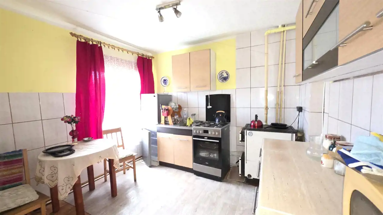 - Media Ogrzewanie: piec; Woda: ciepła - piecyk; Gaz: brak