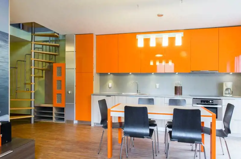 1. Aneks z pełnym wyposażeniem w postaci sprzętu AGD takiego jak płyta grzewcza, piekarnik, zmywarka, okap, zlewozmywak dwu komorowy, meble w zabudowie, wyspa.