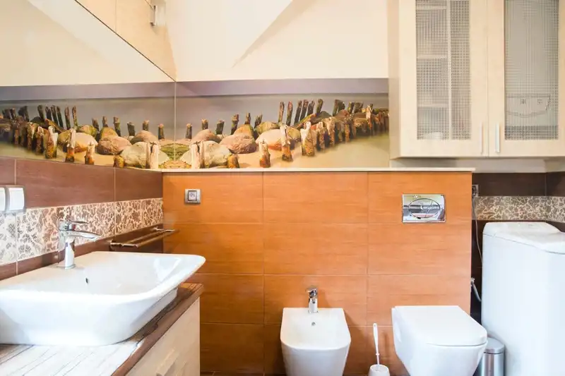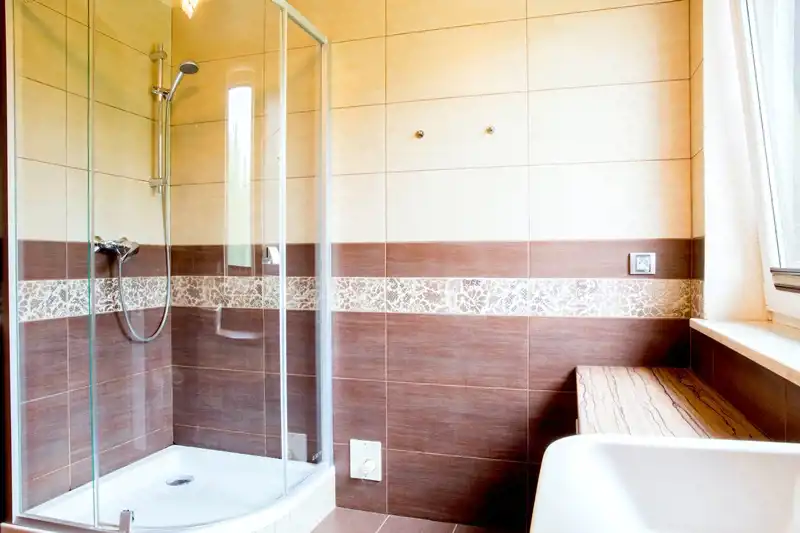 3. Łazienka z WC, bardzo przestronna z oknem, na wyposażeniu WC, bidet, kabina prysznicowa, pralka.