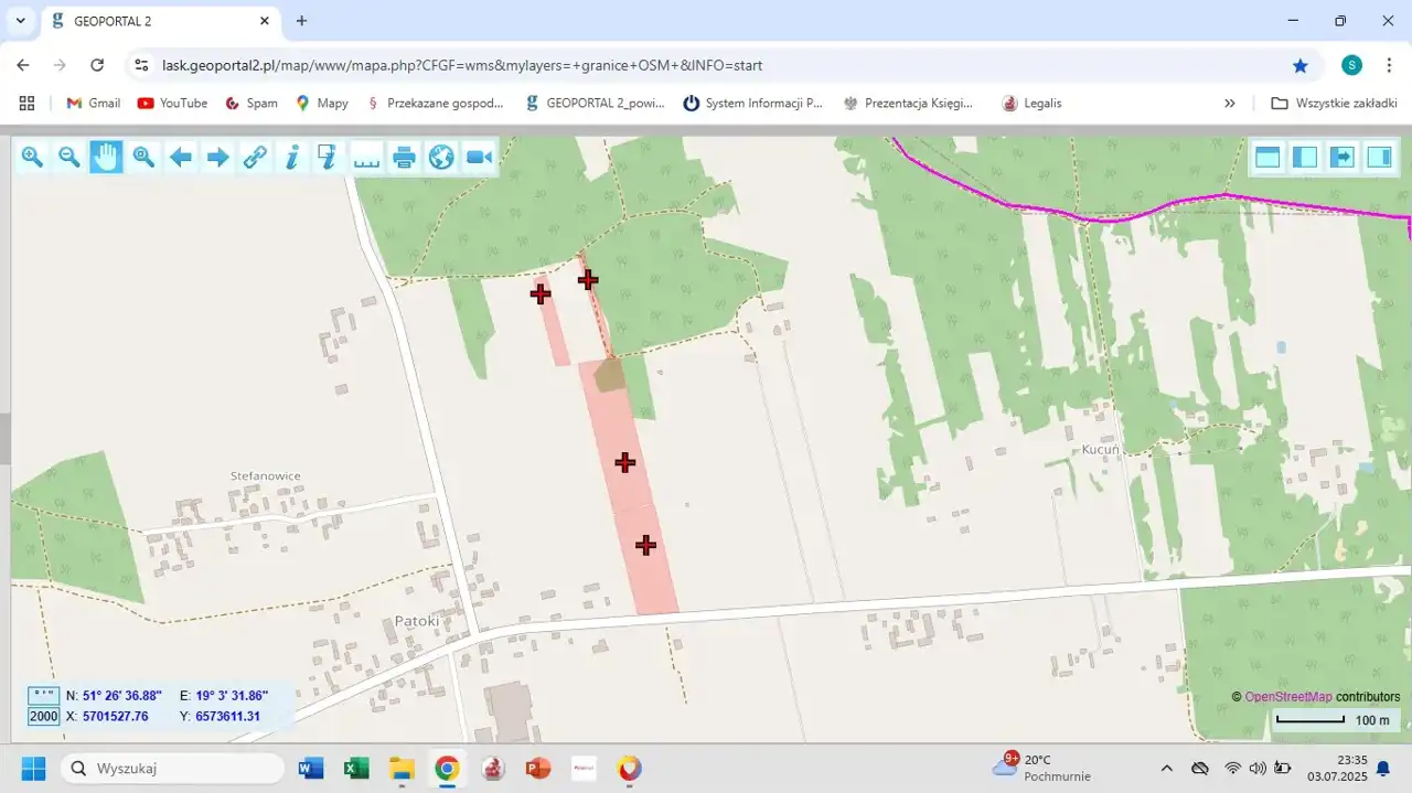 Dojazd do frontowej działki objętej MPZP od głównej drogi asfaltowej, dojazd do działek możliwy również drogą leśną od drugiej strony. Około 2,4 ha (działka 319 i 320 obręb Patoki) aktualnie jest uprawiana, pozostała część ok. 0,5 ha (działka 280 i 289 obręb Patoki) na chwilę obecną leży odłogiem. Działka 289 wykorzystywana jest jako droga dojazdowa do działki 320 od strony lasu.