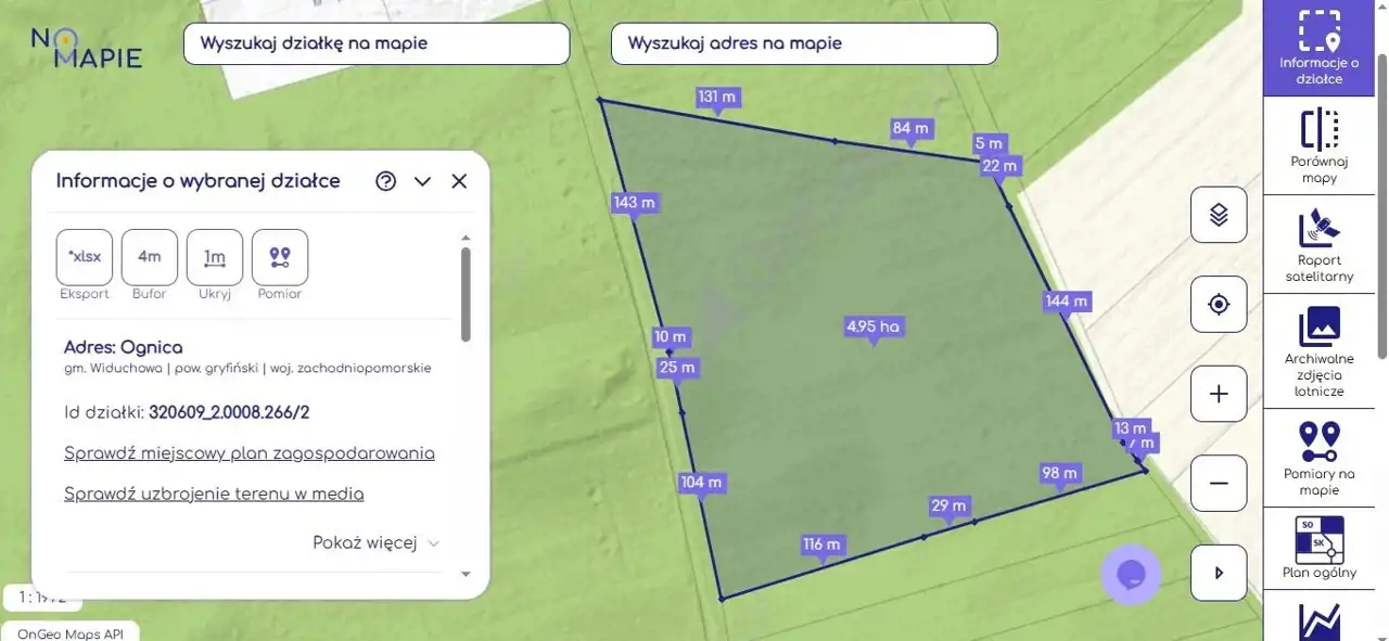 Na sprzedaż atrakcyjna działka gruntowa o powierzchni 4,9529 ha (49 529 m²), położona w miejscowości Ognica, gmina Widuchowa, województwo zachodniopomorskie.