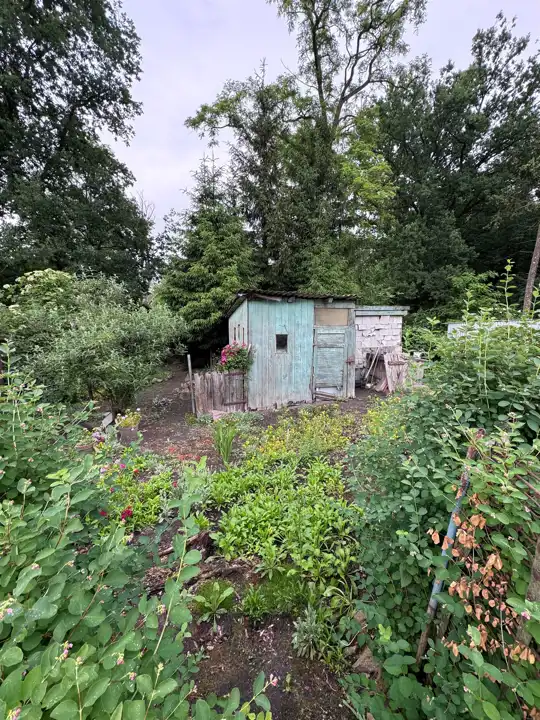 • Ogródek: Duży ogródek działkowy z nasadzeniami i szopą