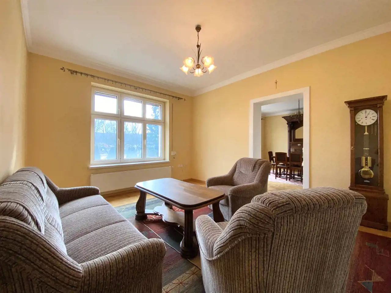 Całość w bardzo dobrym stanie technicznym. Kilka lat temu wymieniona została instalacja elektryczna, centralne ogrzewanie olejowe (grzejniki i cała instalacja nowego typu- miedź). W całym budynku okna PCV. Odnowiona elewacja.
