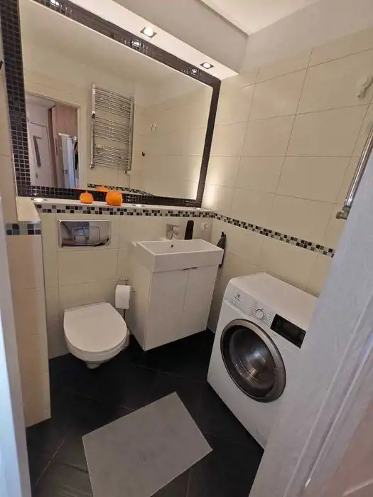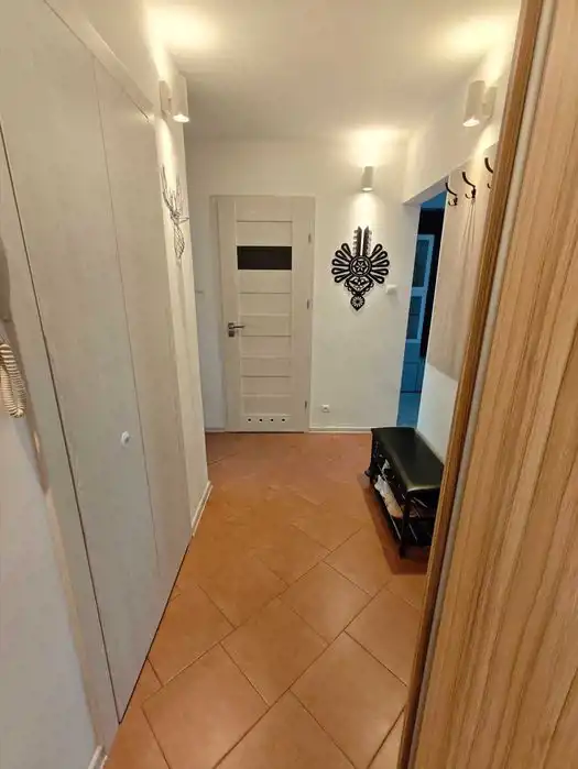 Istnieje możliwość uzgodnienia pozostawienia części umeblowania — szafa w przedpokoju oraz meble kuchenne pozostają w cenie.