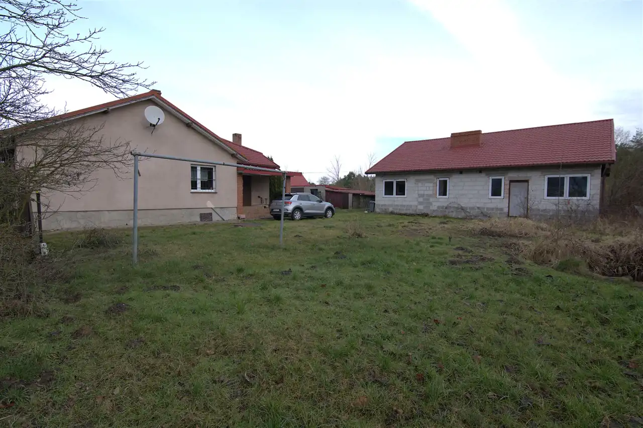 Dom mieszkalny o pow. 95,7 m2, + dom stan surowy otwarty o pow. 94,4 m2 z funkcją usługową o pow. 34,8 m2 na działce o pow. 3772 m2
