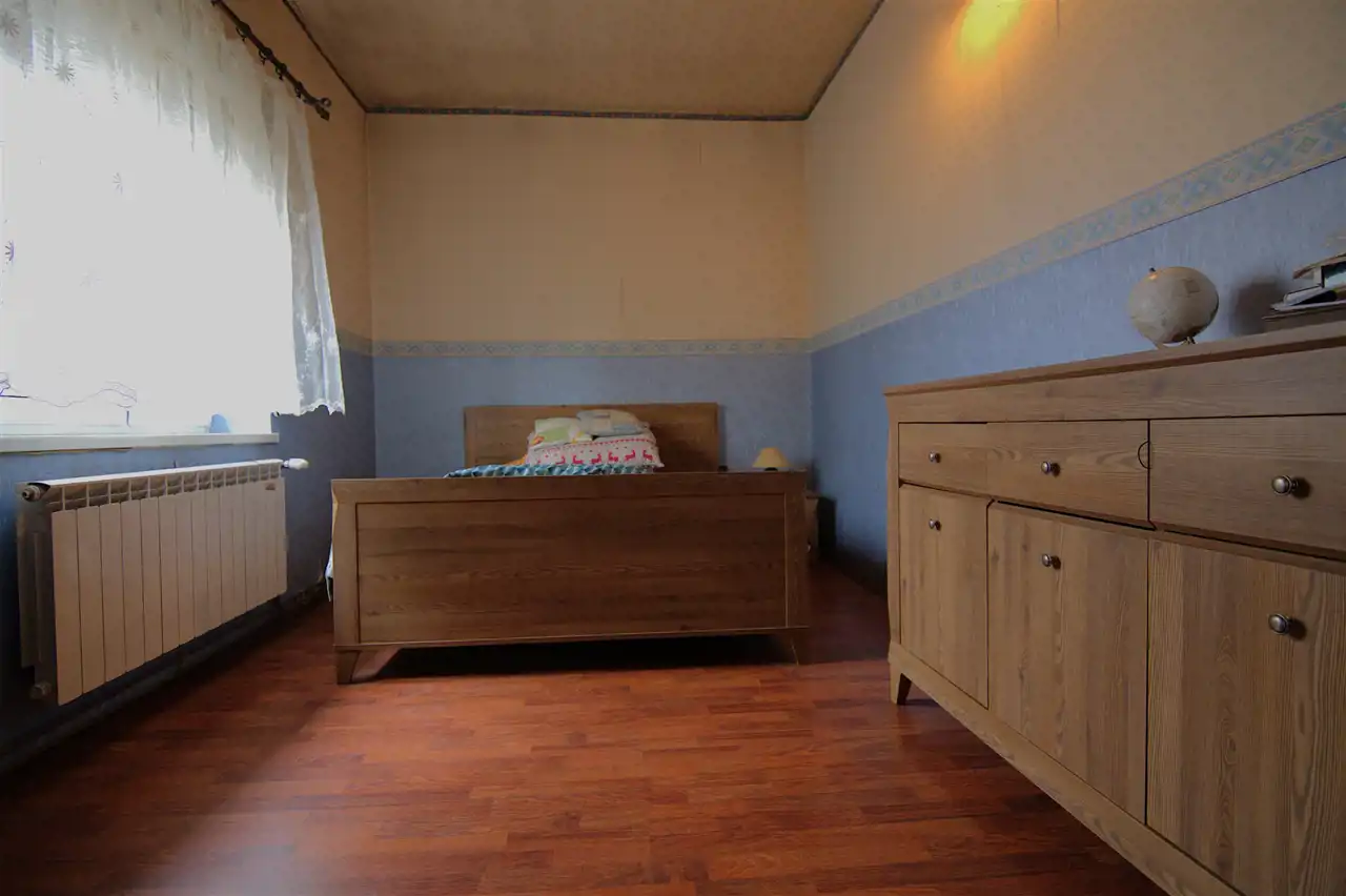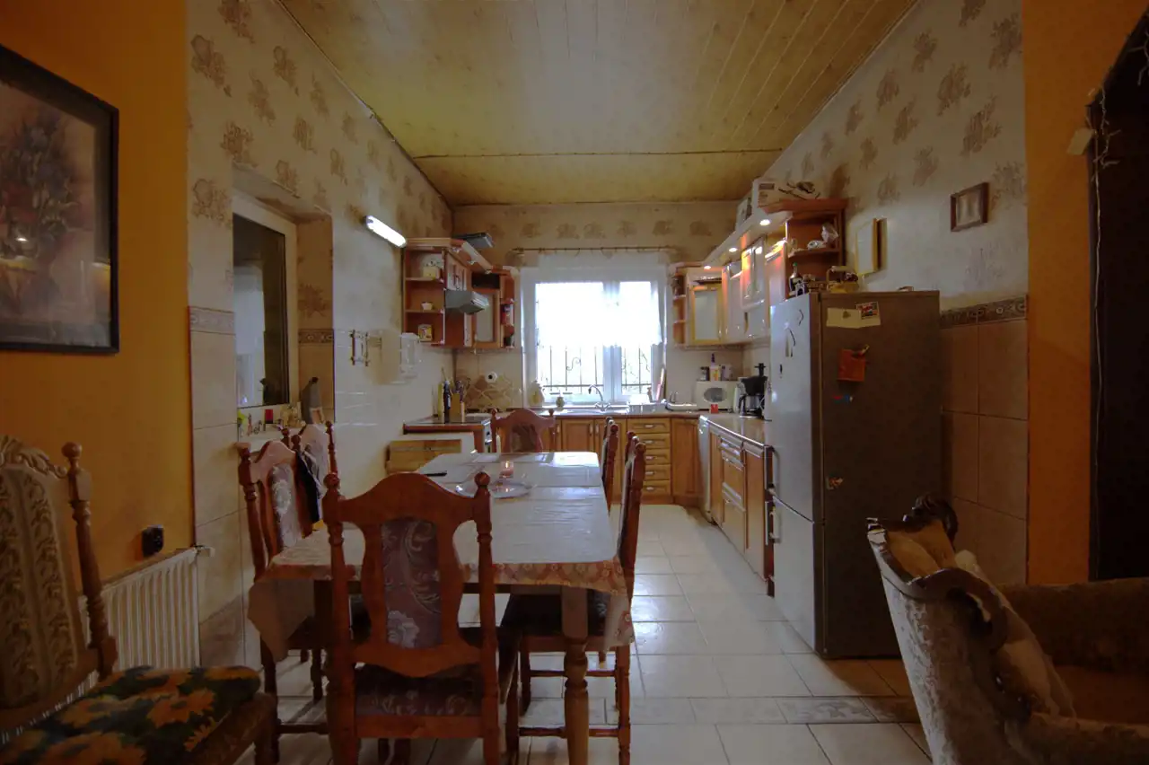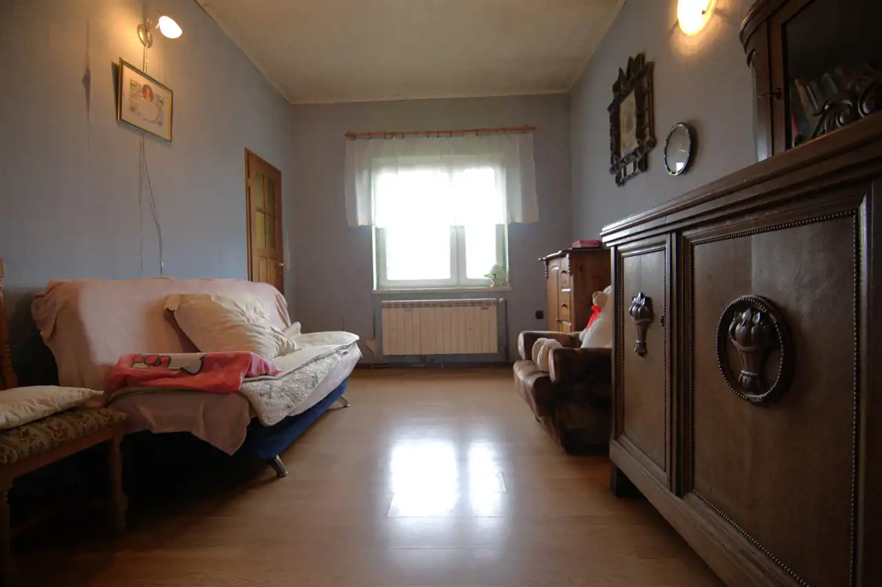 Pierwszy z domów o funkcji mieszkalnej, przeszedł gruntowny remont ok. 20 lat temu. Wymieniono wszystkie instalacje, dach- krokwie i jego poszycie oraz okna. Ogrzewanie - piec na paliwo stałe (drewno/węgiel) + kominek w salonie. Teren ogrodzony, od frontu płotem kutym, brama wjazdowa sterowana (pilot). Na posesji zamontowany monitoring.