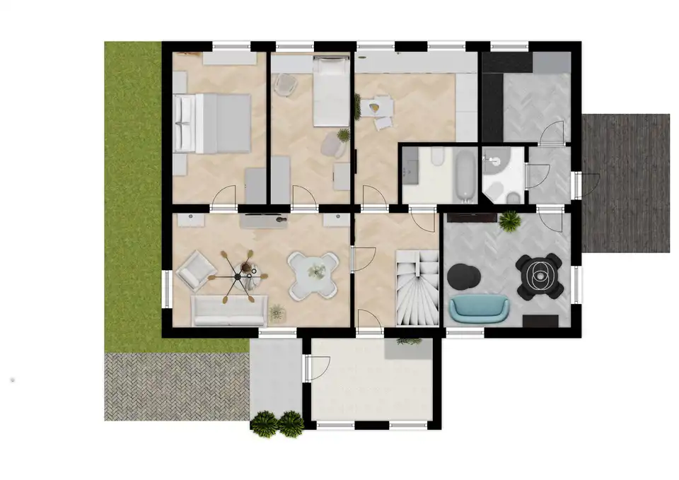 Rozkład pomieszczeń kształtuje się następująco: