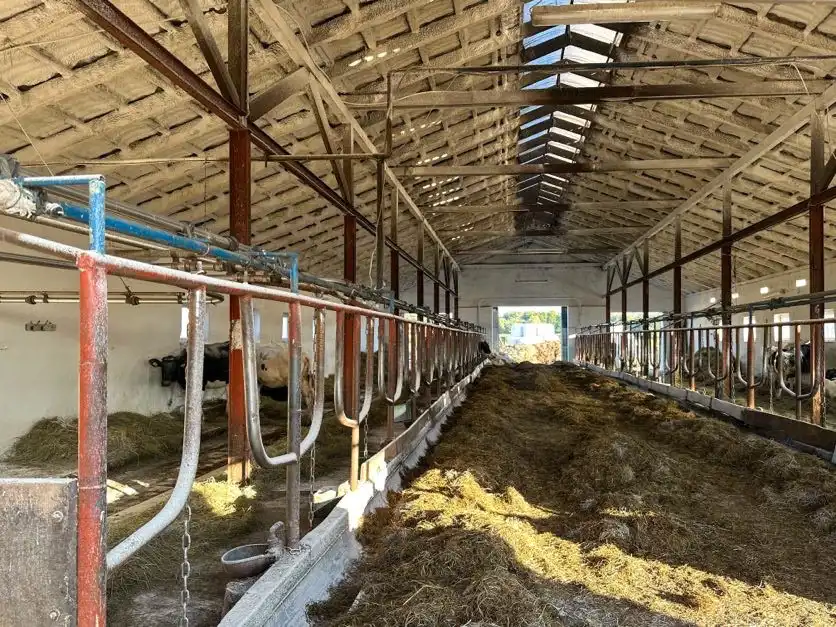 - Nowa obora (438 m²) – 42 stanowiska dla krów mlecznych oraz miejsce dla cieląt, paszociąg centralny, żłoby po obu stronach, płyta obornikowa 137,61 m2 zbiornik na gnojówkę poj. 110 m³, wydzielona przechowalnia mleka 13,04 m²; dzienna produkcja ok. 700 l