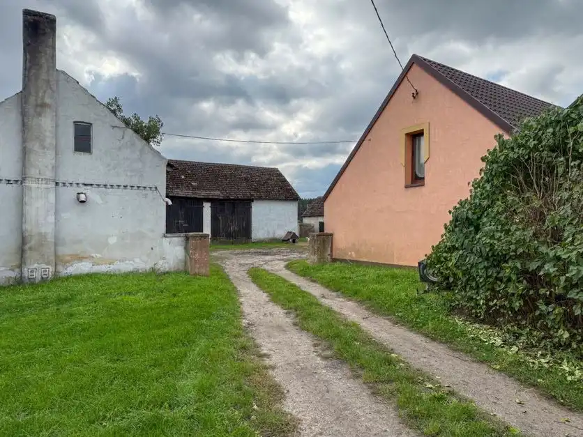 To kompletna nieruchomość – dom mieszkalny, nowa obora, magazyny, garaże, wiaty oraz baza paszowa.