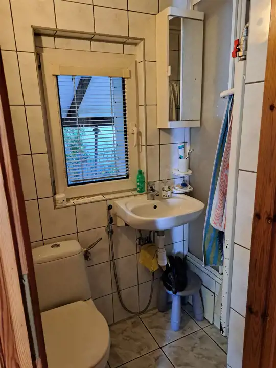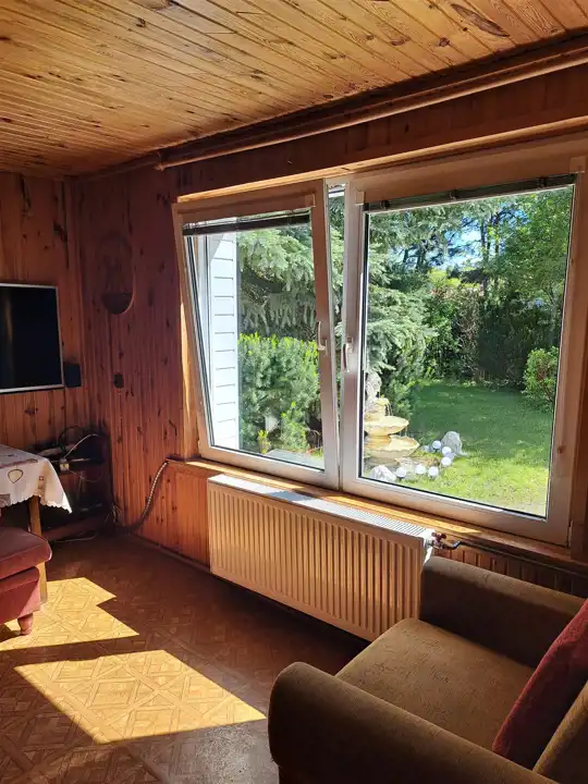 Dom całoroczny z 1988 roku o powierzchni 57,75 m², z dodatkowym zabudowanym tarasem (9,18 m²) – idealny do relaksu niezależnie od pogody.