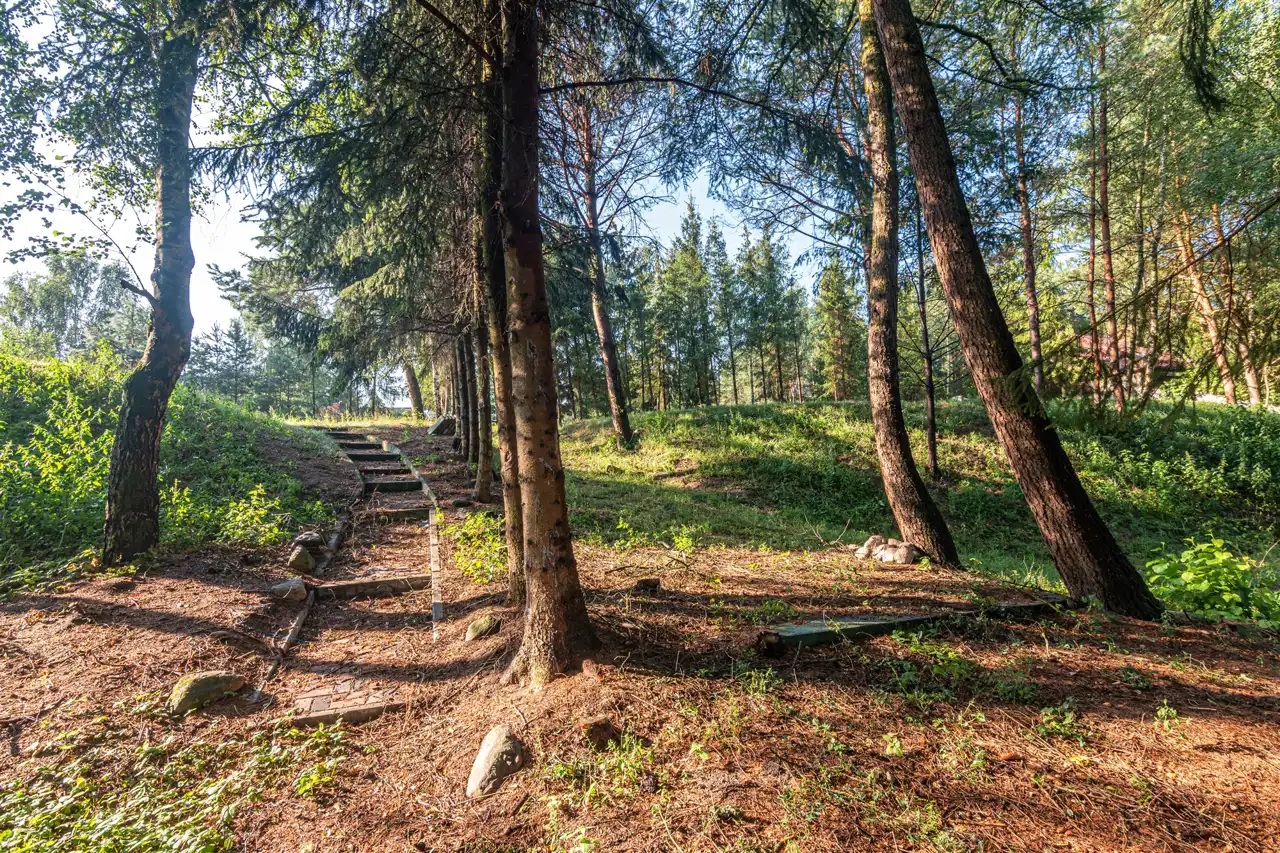 Działka częściowo zadrzewiona, teren płaski, częściowo lekko opadający w dół w stronę jeziora. W najbliższej okolicy zabudowa rekreacyjna. Teren na którym położona jest działka nie jest objęty MPZP, w studium zabudowa letniskowa. Oznaczenie użytku RVI, N - grunty orne, nieużytki.