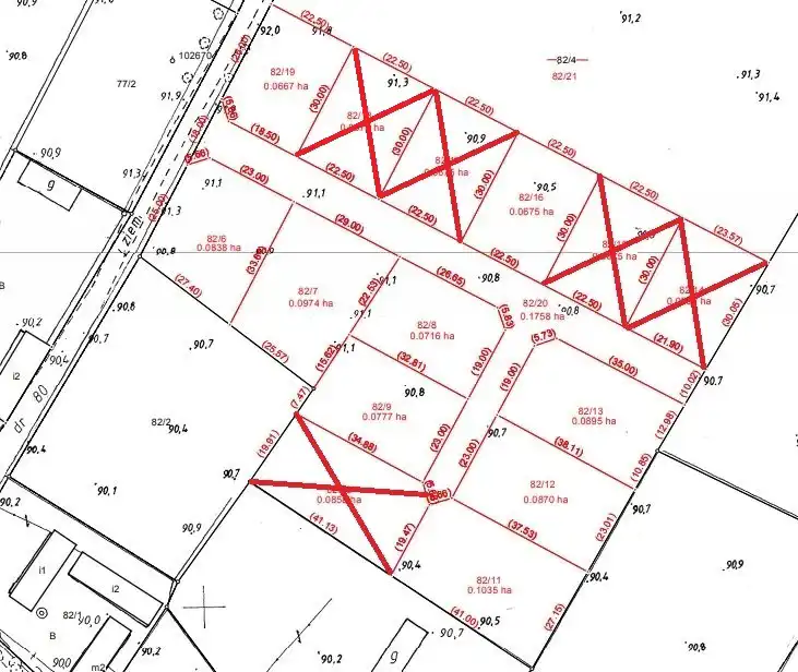 Powierzchnia i wymiary działek widoczne na załączonej mapce.