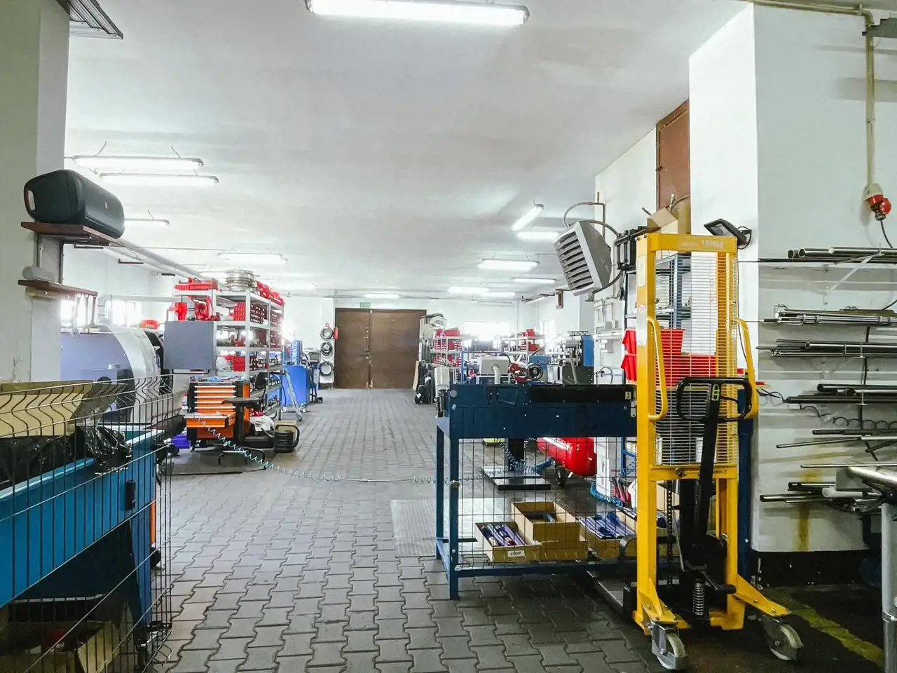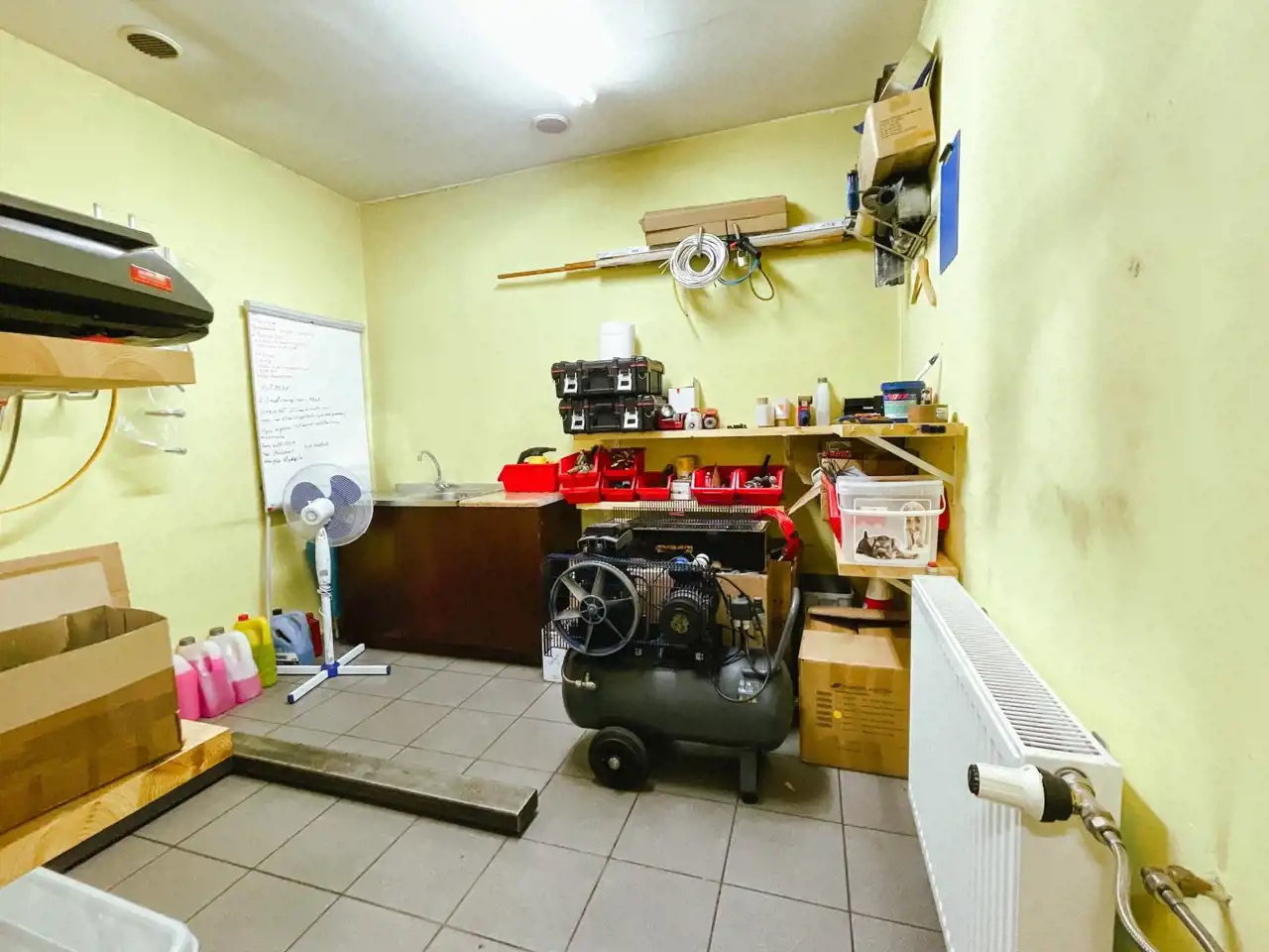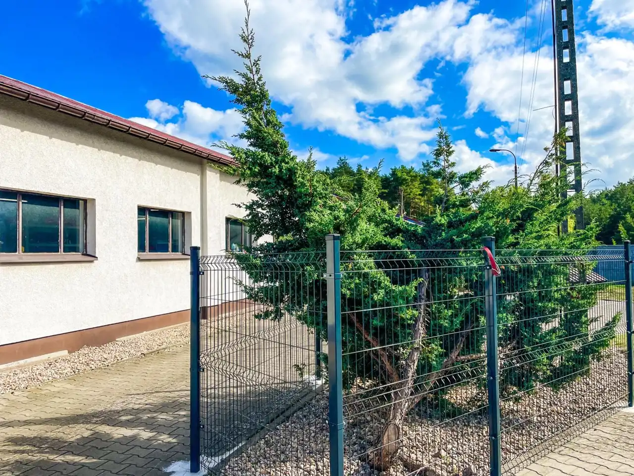 W budynku znajdują się również magazyny 6,35 m2 i 8,10 m2, warsztat 4,54 m2, biura 9,12 m2 i 8,67 m2,