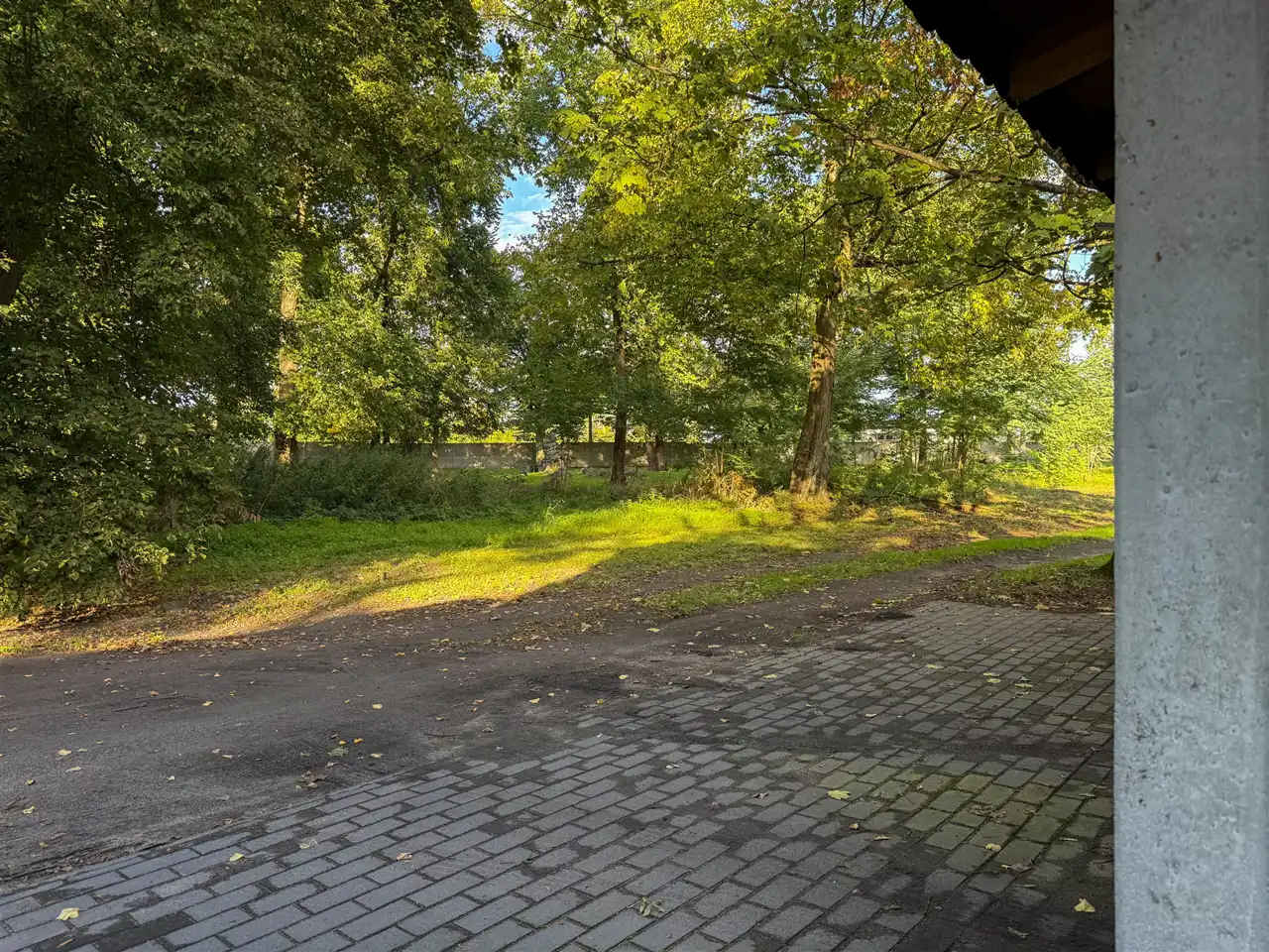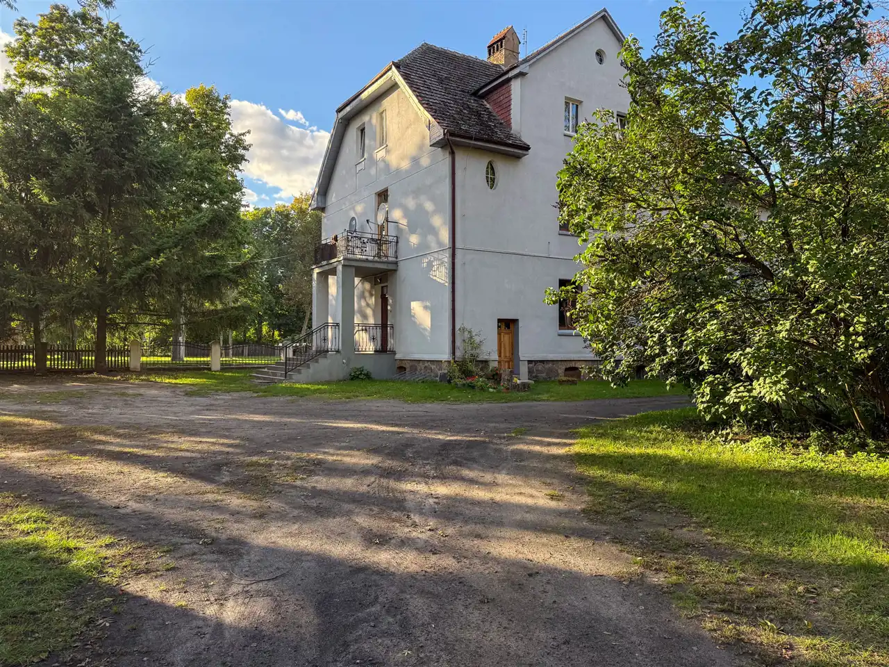 Teren częściowo ogrodzony, z bramą wjazdową.