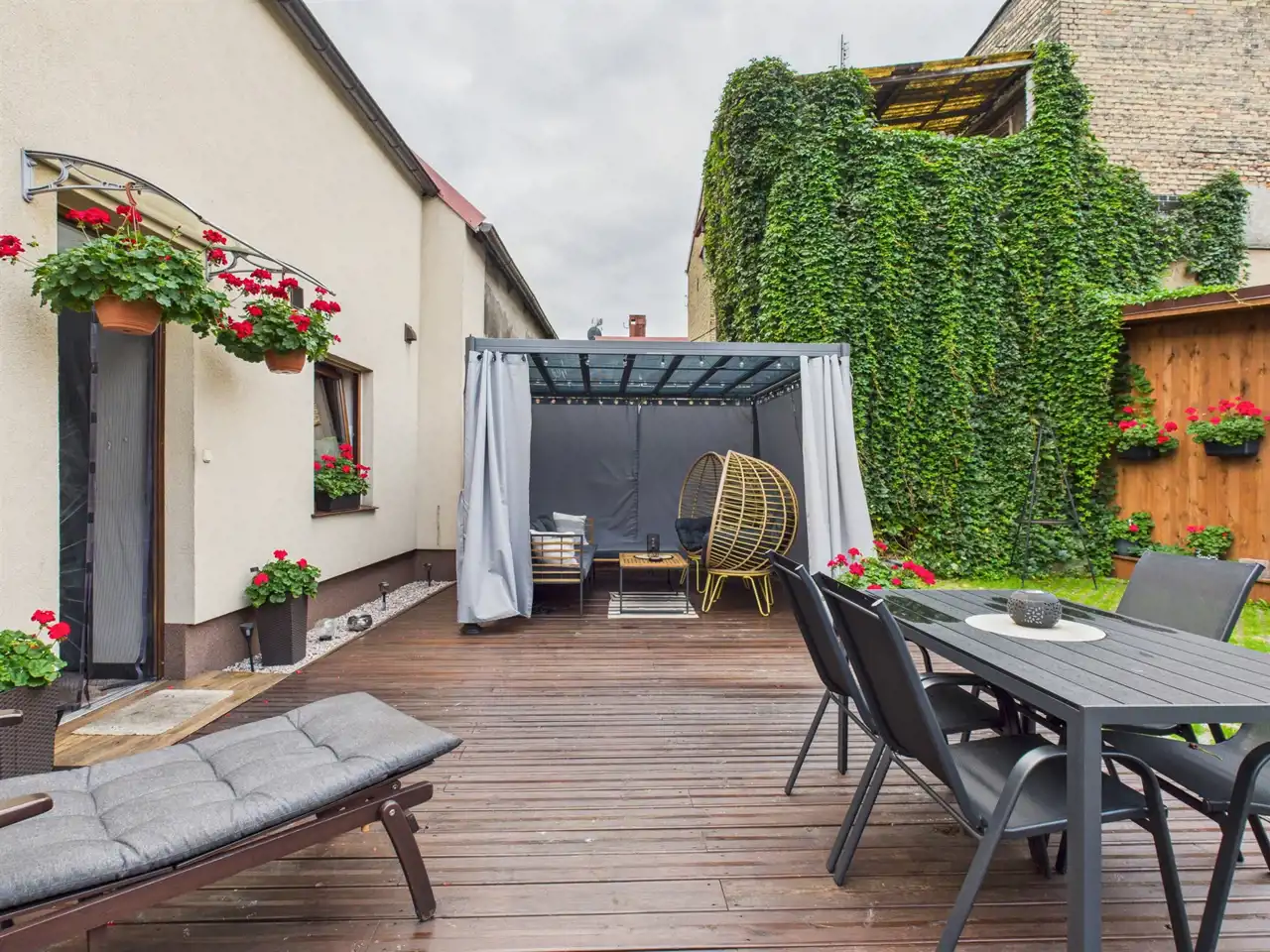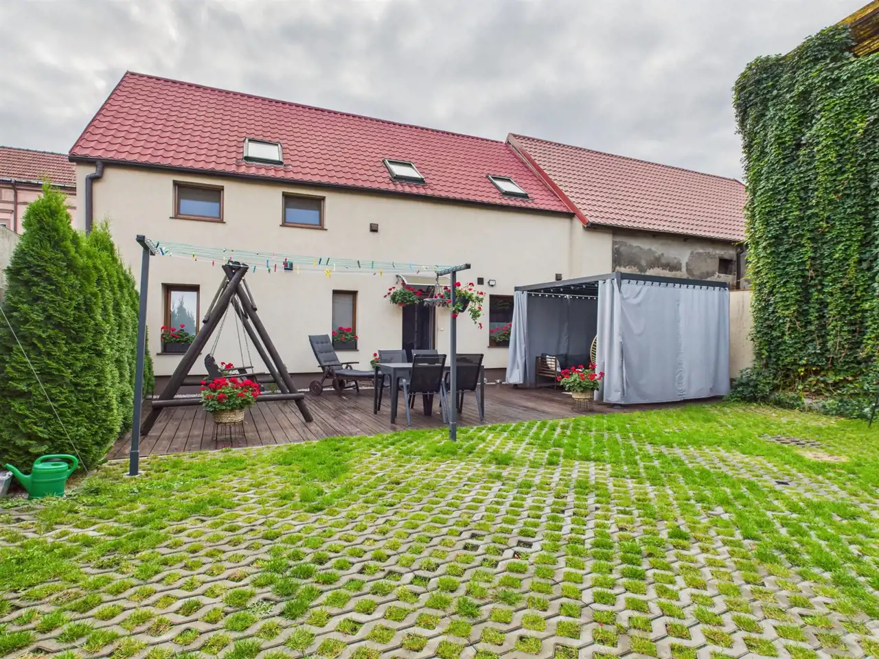 Z drugiej strony działki znajduje się przytulny dom jednorodzinny, w zabudowie szeregowej który zapewnia komfort i prywatność. Do domu przylega przestronny taras, doskonały do relaksu na świeżym powietrzu, stwarza idealne warunki do spędzania wolnego czasu, organizowania spotkań rodzinnych czy wieczorów w gronie najbliższych lub przyjaciół.
