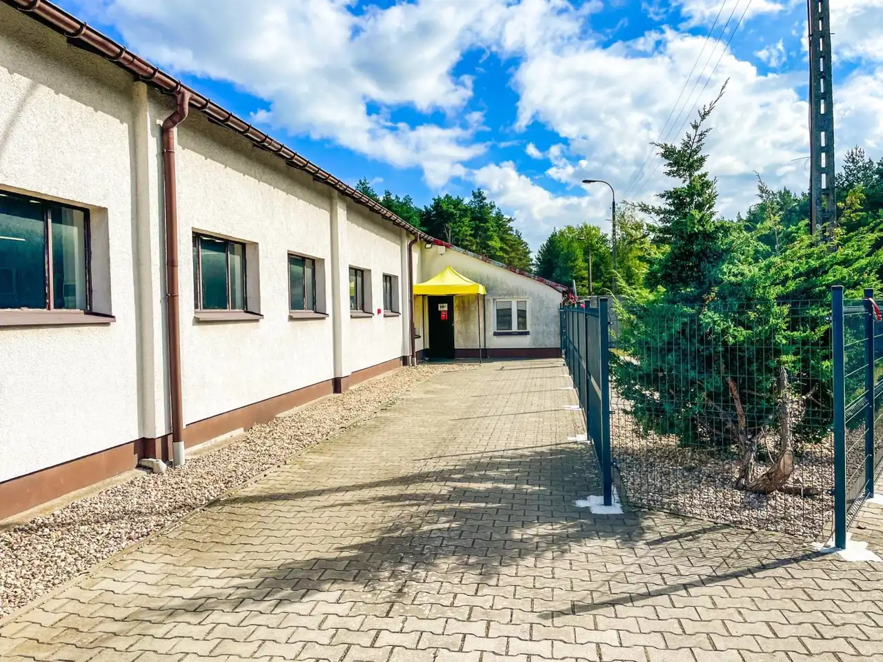 W budynku znajdują się również magazyny 6,35 m2 i 8,10 m2, warsztat 4,54 m2, biura 9,12 m2 i 8,67 m2,