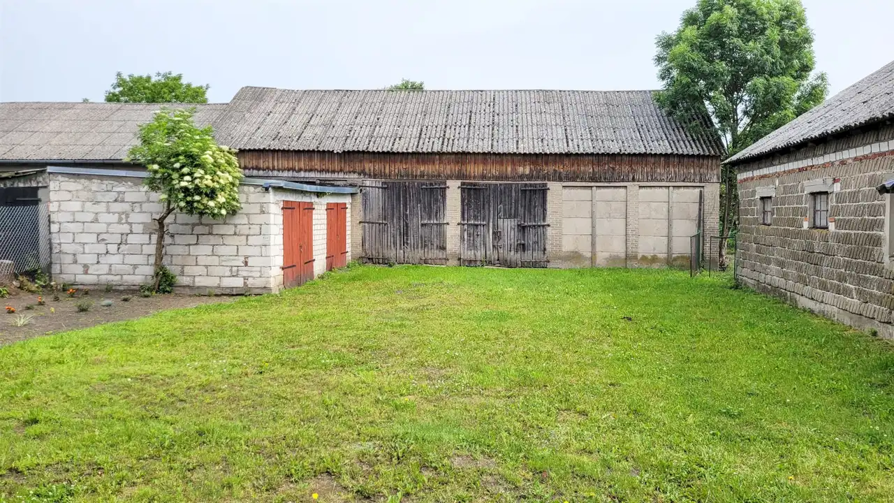 Wokół budynku sporo zieleni. Ogródek przed domem, a za budynkami piękna duża działka z miejscem do wypoczynku na świeżym powietrzu, idealny dla osób chcących odpocząć od zgiełku miasta lub pod uprawę roślin. Teren ogrodzony z wygodną bramą wjazdową z pozwolenie na wjazd dla ciężarówek, z dużym garażem na 2 auta; budynki gospodarcze w dobrym stanie do adaptacji pod działalność. Możliwość zaadoptowania poddasza bud. mieszkalnego pod pokoje. Jeden z budynków gospodarczych można stosunkowo łatwo zaadoptować na mieszkalny. Gminna kanalizacja +dodatkowe własne szambo.