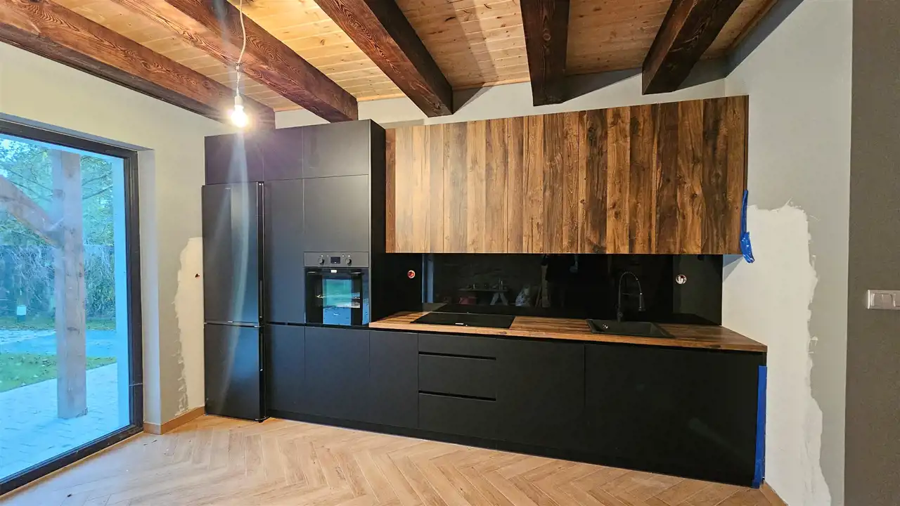 Meble kuchenne w zabudowie wraz z nowym AGD.