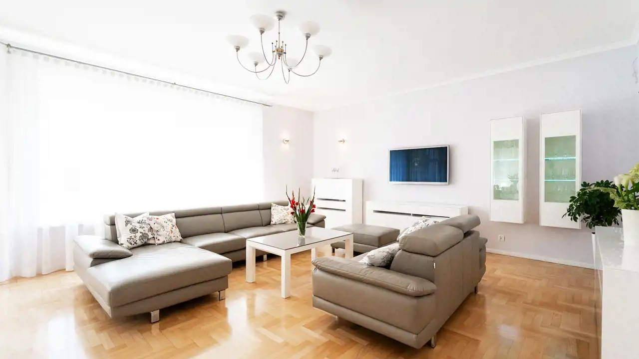 - w większości pomieszczeń podłogi wykończone są parkietem bukowym