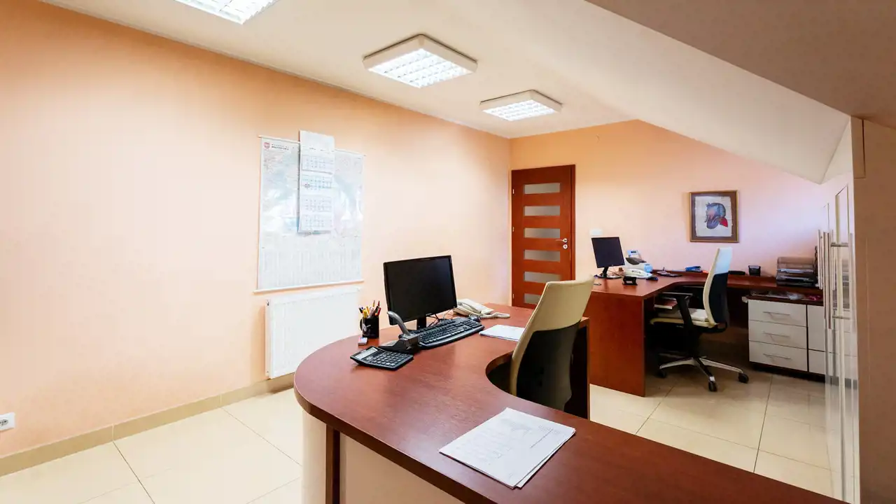 Pełni funkcję biurowo-magazynową, posiada oddzielną instalację centralnego ogrzewania oraz węzeł sanitarny.