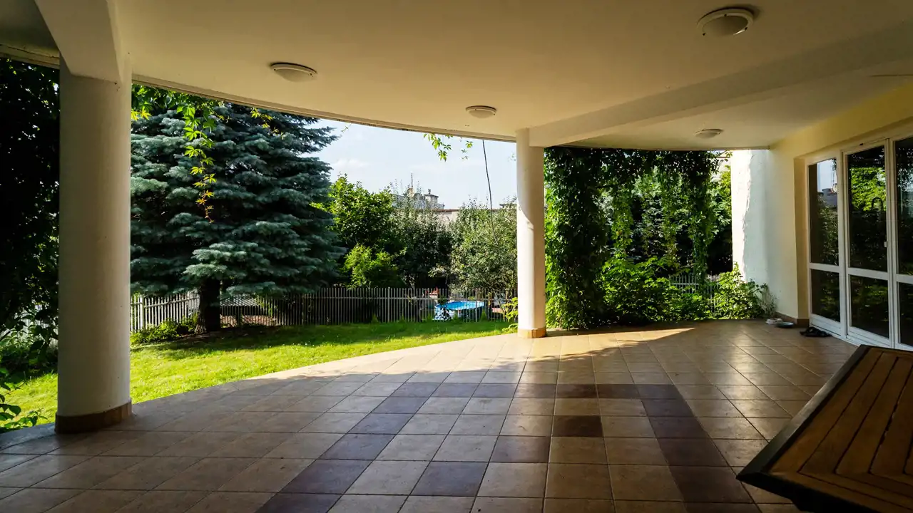 Uwagę przyciąga zadbany ogród, który podkreśla rezydencjalny charakter nieruchomości.