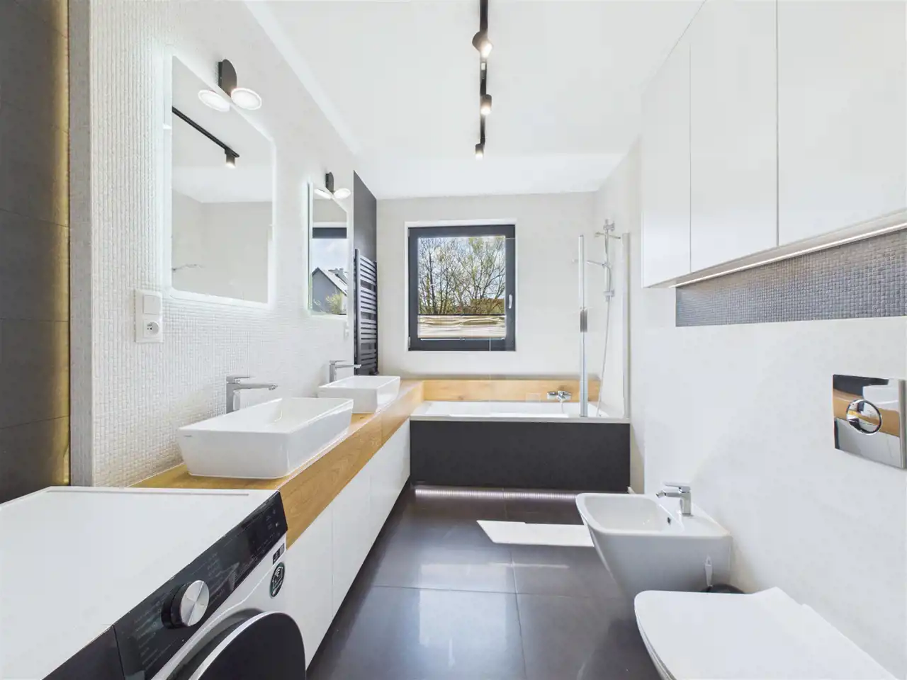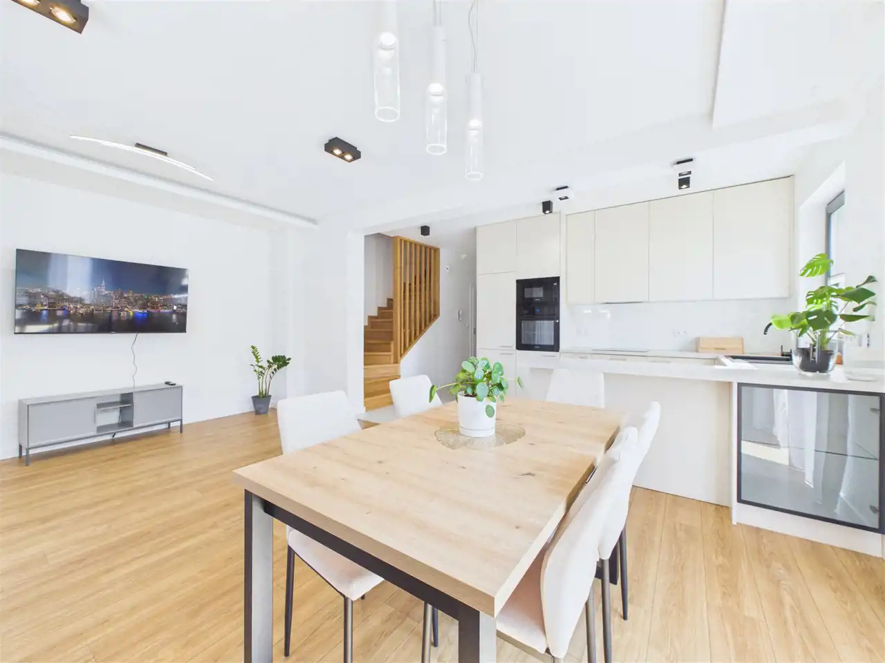 Будинок у забудові (типу дуплекс) загальною площею приблизно 140 квадратних метрів, розташований на ділянці 4,5 ара. Нерухомість доступна вже та призначена для житлового використання.