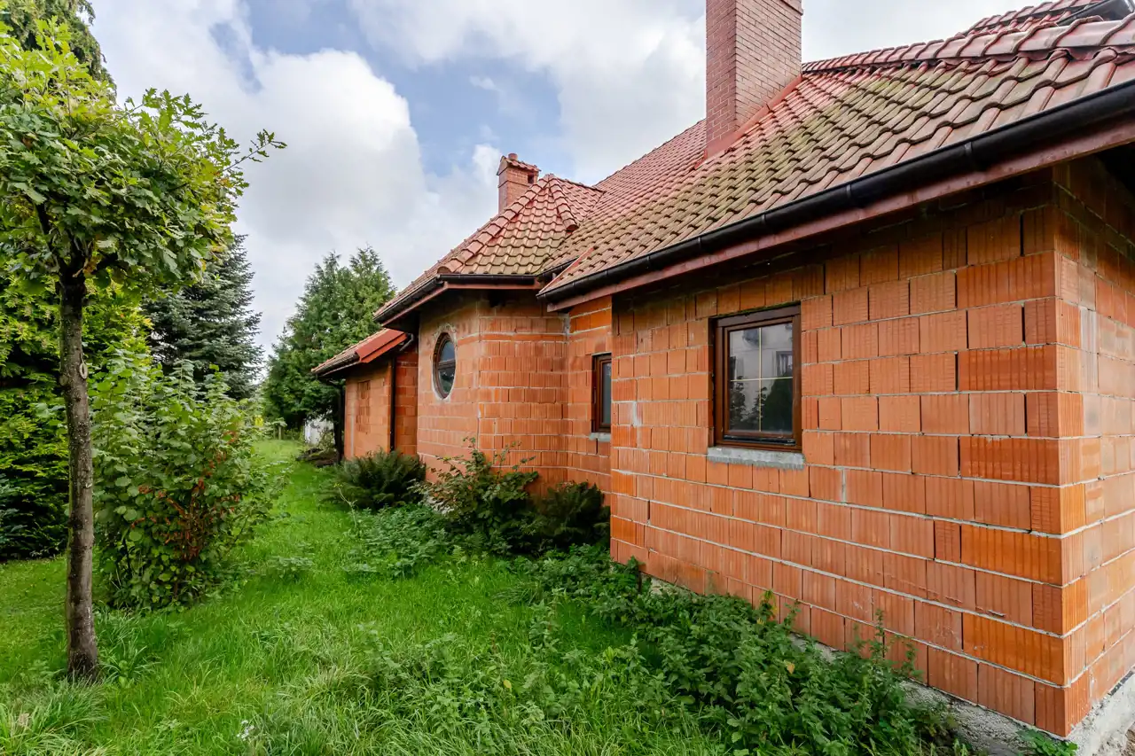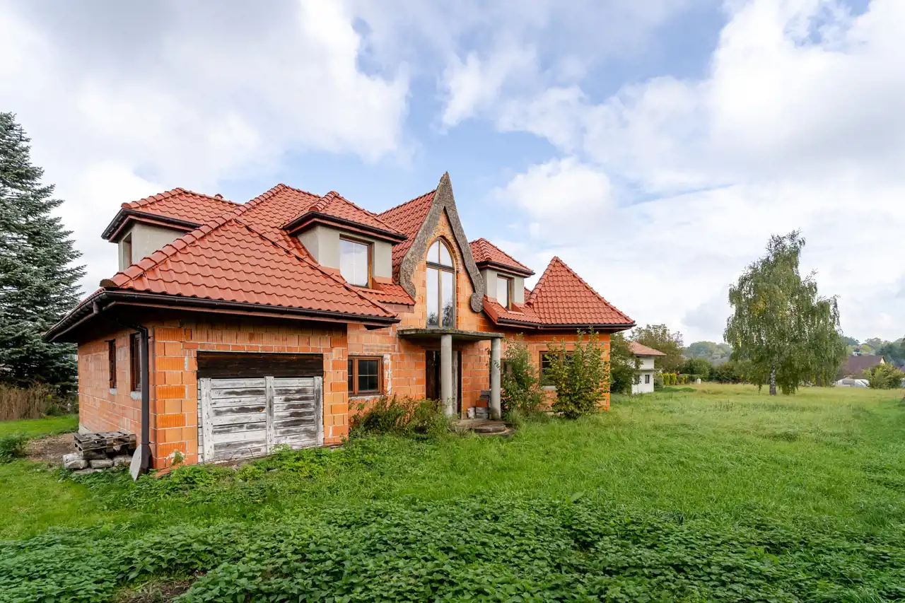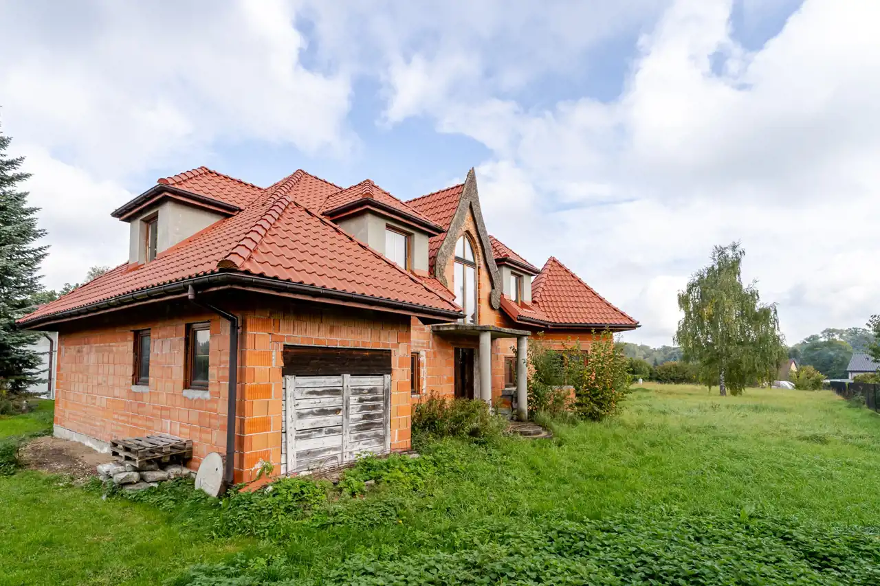 Na sprzedaż budynek jednorodzinny wolnostojący, wybudowany według projektu „Harfa” (pracownia Archeton), w stanie surowym zamkniętym (zbite mury, dach, stolarka okienna/drzwiowa) – co pozwala nowemu właścicielowi na wykończenie we własnym stylu i w dogodnym dla siebie czasie.