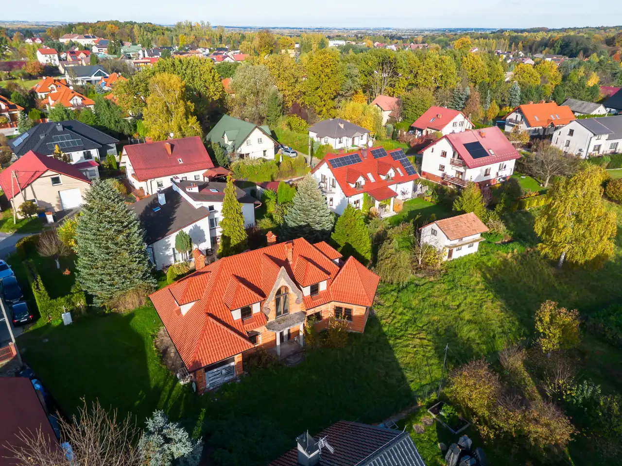 Położenie podmiejskie – w pobliżu większych miast, co ułatwia dostęp do infrastruktury miejskiej, a jednocześnie zapewnia ciszę i przestrzeń (co dla domu na 20 arach jest dużym plusem).