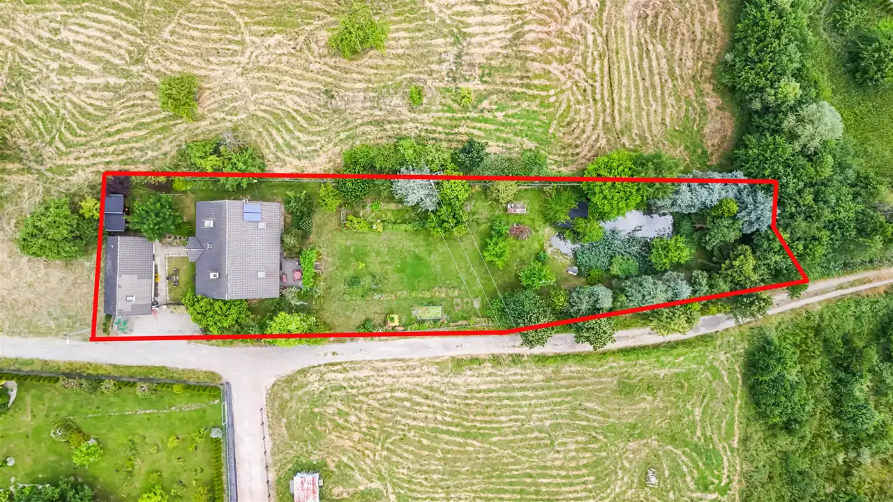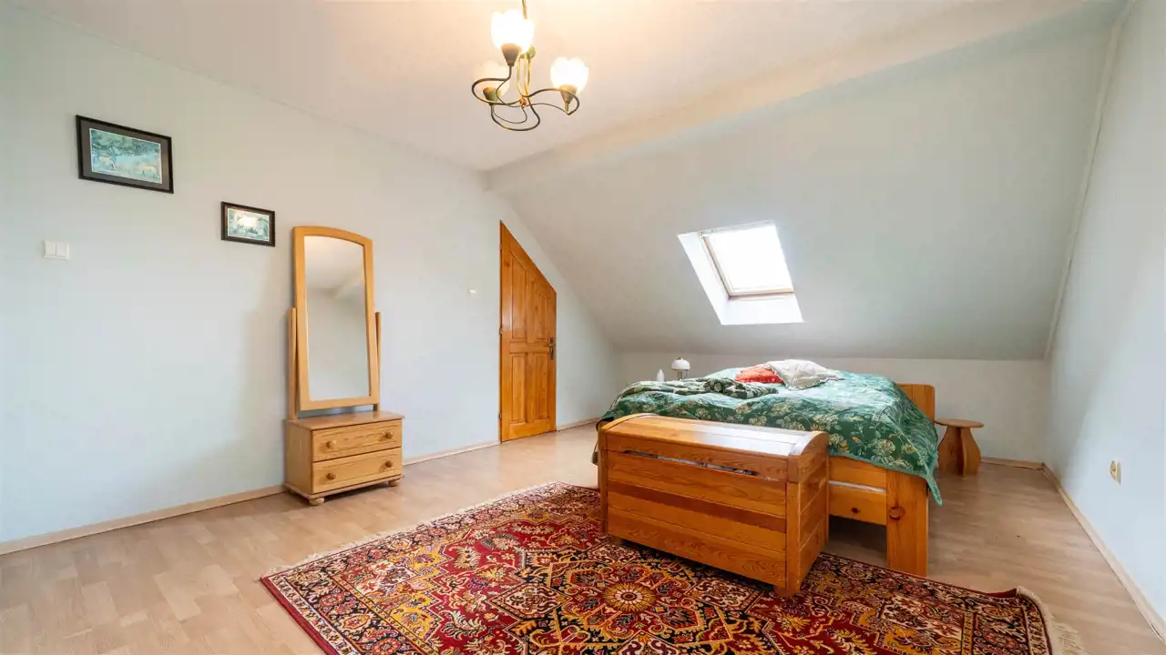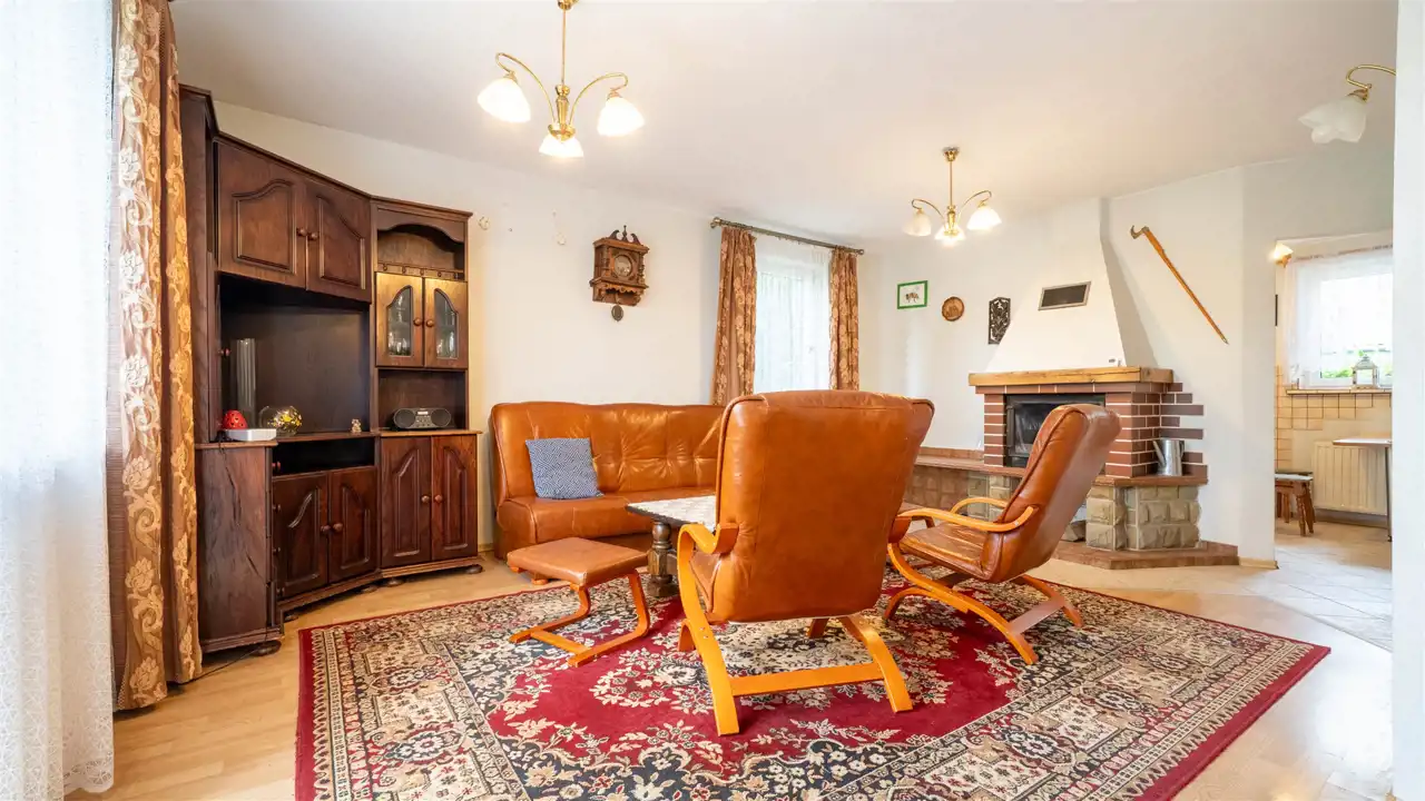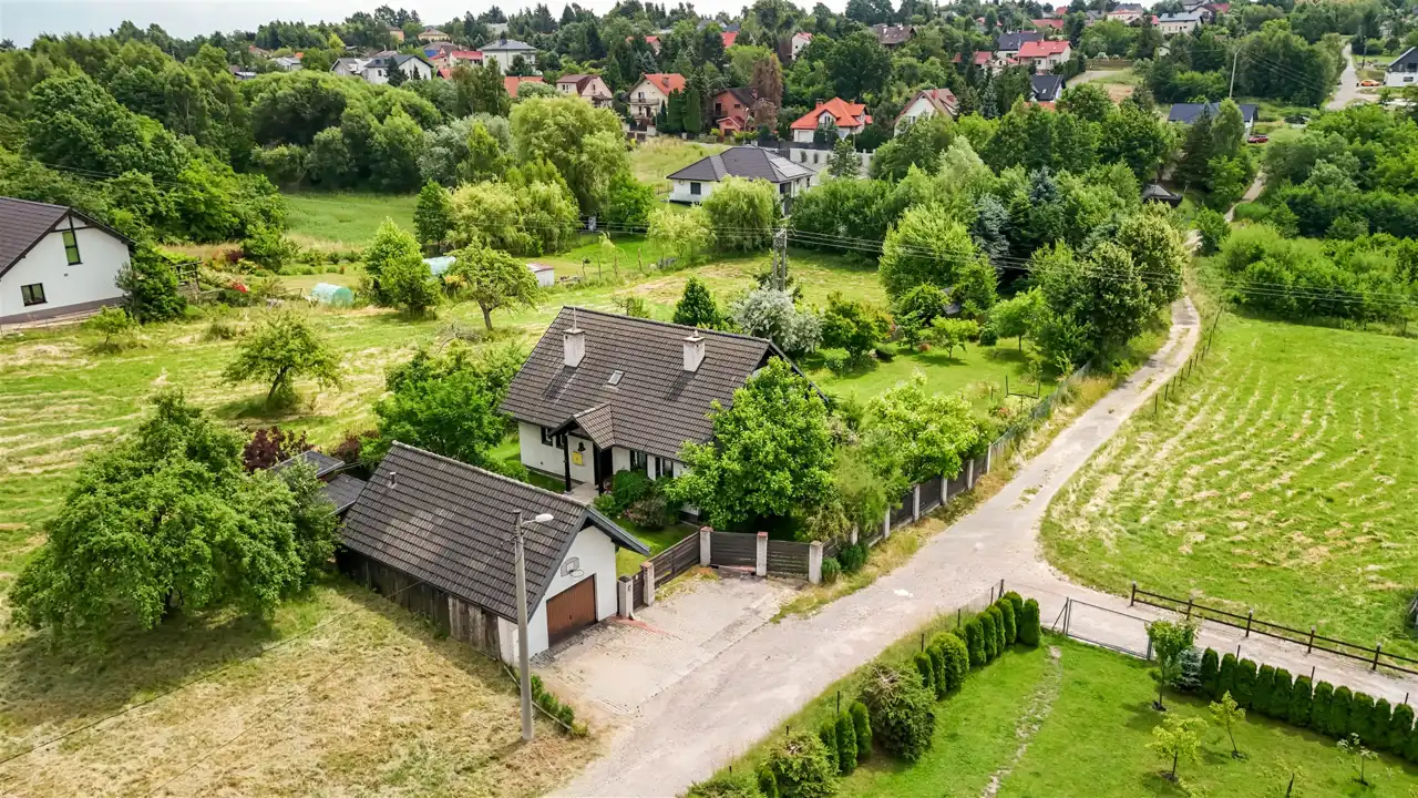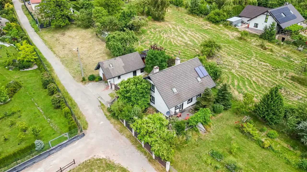 Na pięknie zagospodarowanej 17-arowej działce znajduje się wolnostojący, rodzinny dom z 2000 roku o powierzchni 144 m², który zachwyca już od pierwszego kroku. Otoczony zielenią, kwiatami, drzewami i zarybionym stawem – ten ogród wygląda jak z ilustracji w książce dla dzieci. Regularnym gościem w stawie jest zaprzyjaźniony żółw, który stał się nieformalnym mieszkańcem posesji.