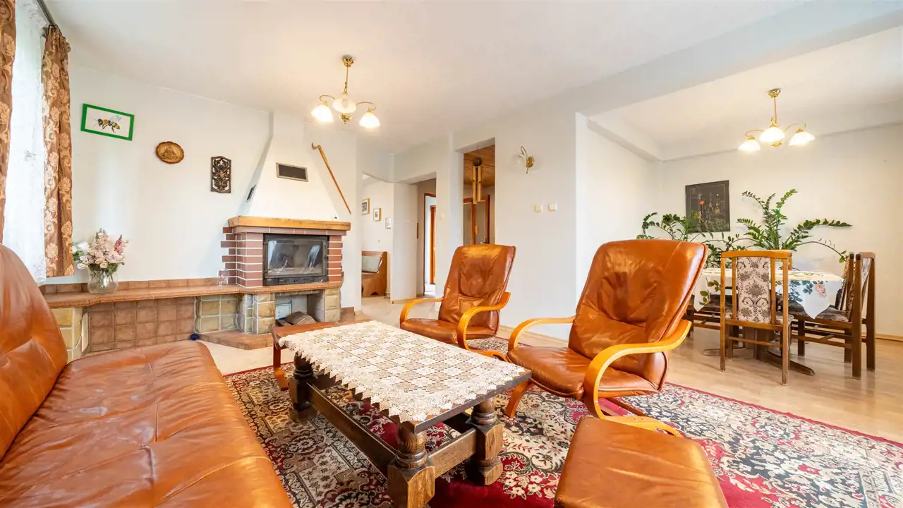 - Przestronny salon z kominkiem i wyjściem na taras,