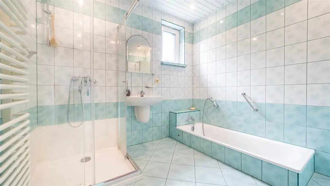 - Łazienka, z wanną, prysznicem i WC,