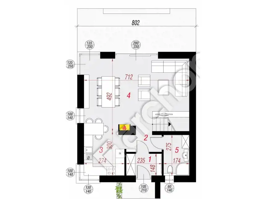 KOŹMICE WIELKIE, DOM – o powierzchni 105 m2 (użytkowa 94,4m2), wybudowany w 2025 r., wykończony w wysokim standardzie. Wybudowany według projektu Archon "Dam na wzgórzu N".