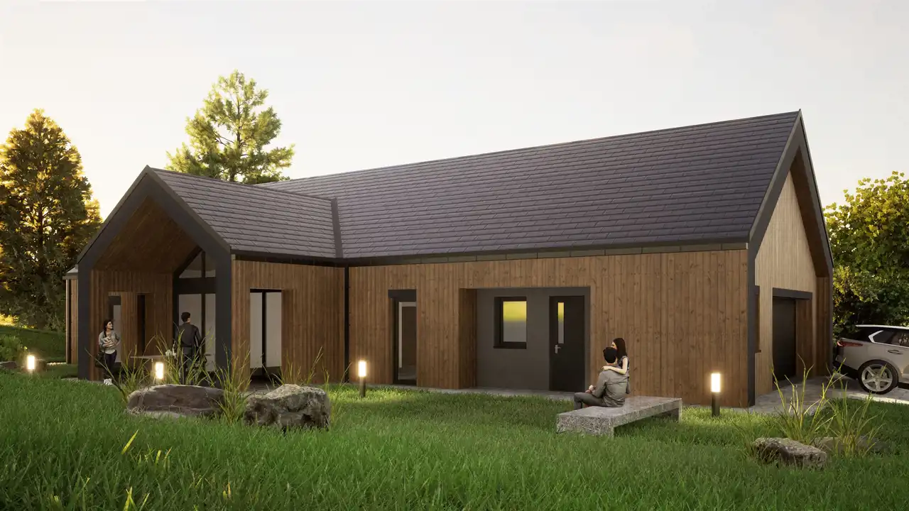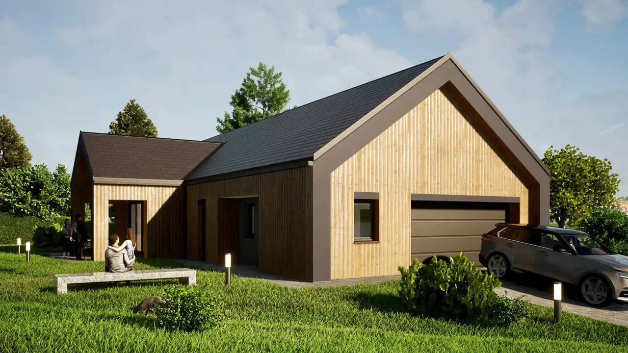 Charakteryzuje się nowoczesnym stylem. Duże przeszklenia, elementy z drewna sprawiają, że prezentuje się bardzo atrakcyjnie i bardzo oryginalnie. Budowany zgodnie z nowoczesną technologią z materiałów najwyższej jakości pozwalających na uzyskanie doskonałych parametrów termicznych.