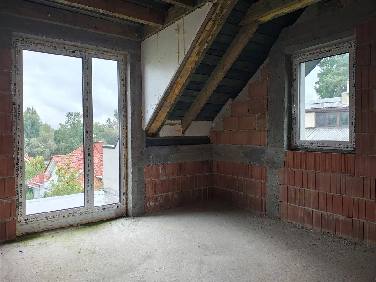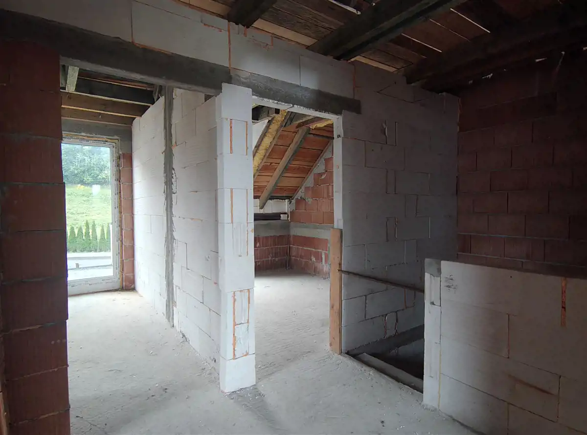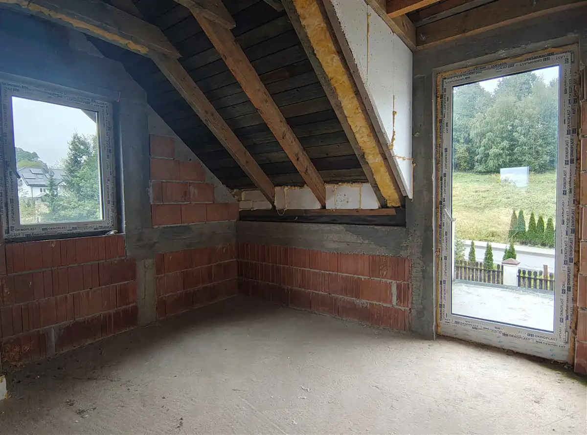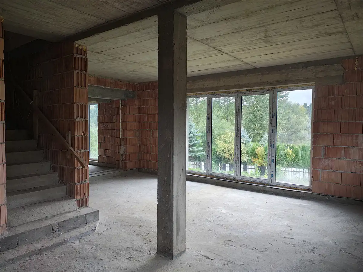 Dom w stanie surowym zamkniętym (z aktualnymi wpisami w dzienniku budowy). Budowa została wykonana w 2024 roku według projektu Lila Duo firmy Archeton. Do doprowadzenia do stanu deweloperskiego pozostało: rozprowadzenie wszystkich instalacji (elektrycznej, wodno-kanalizacyjnej etc.), tynki oraz wylewki.