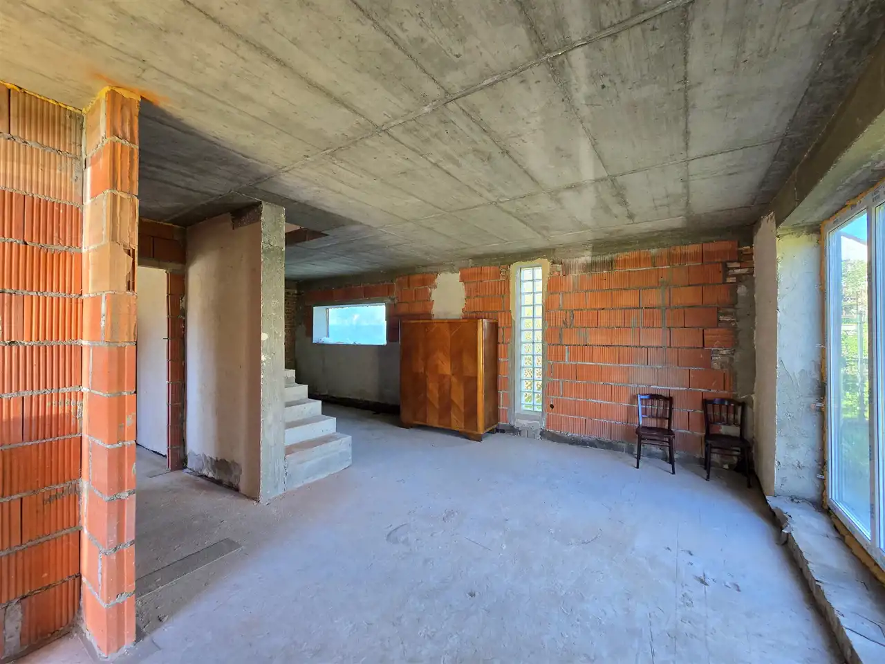 na piętro prowadzą schody żelbetonowe.
