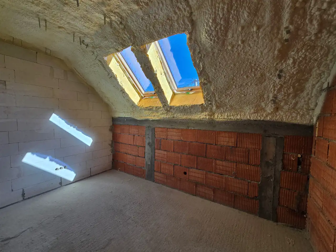 Poddasze ocieplone pianą.
